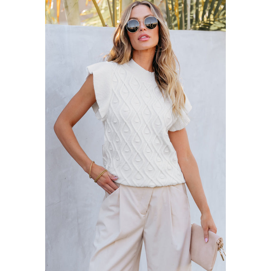 Ruffled Round Neck Cap Sleeve Knit Top