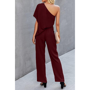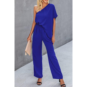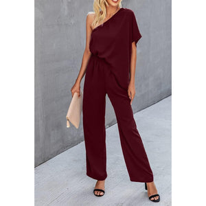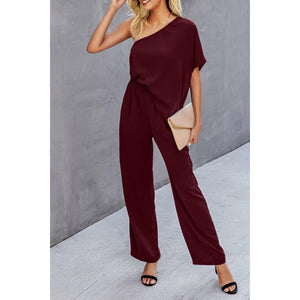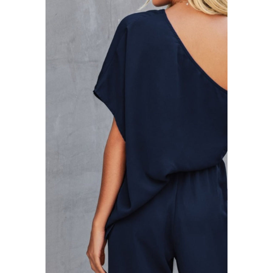 Single Shoulder Short Sleeve Jumpsuit
