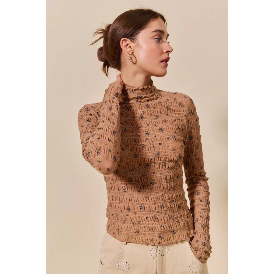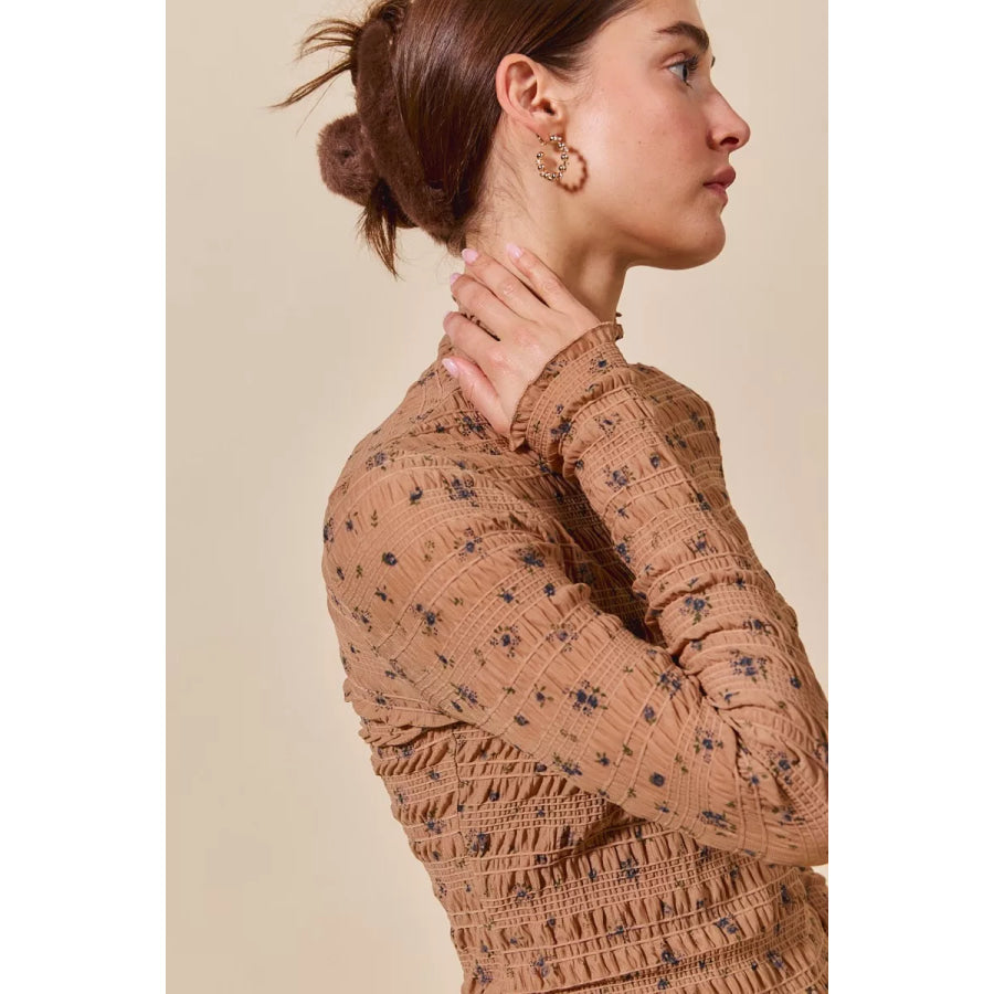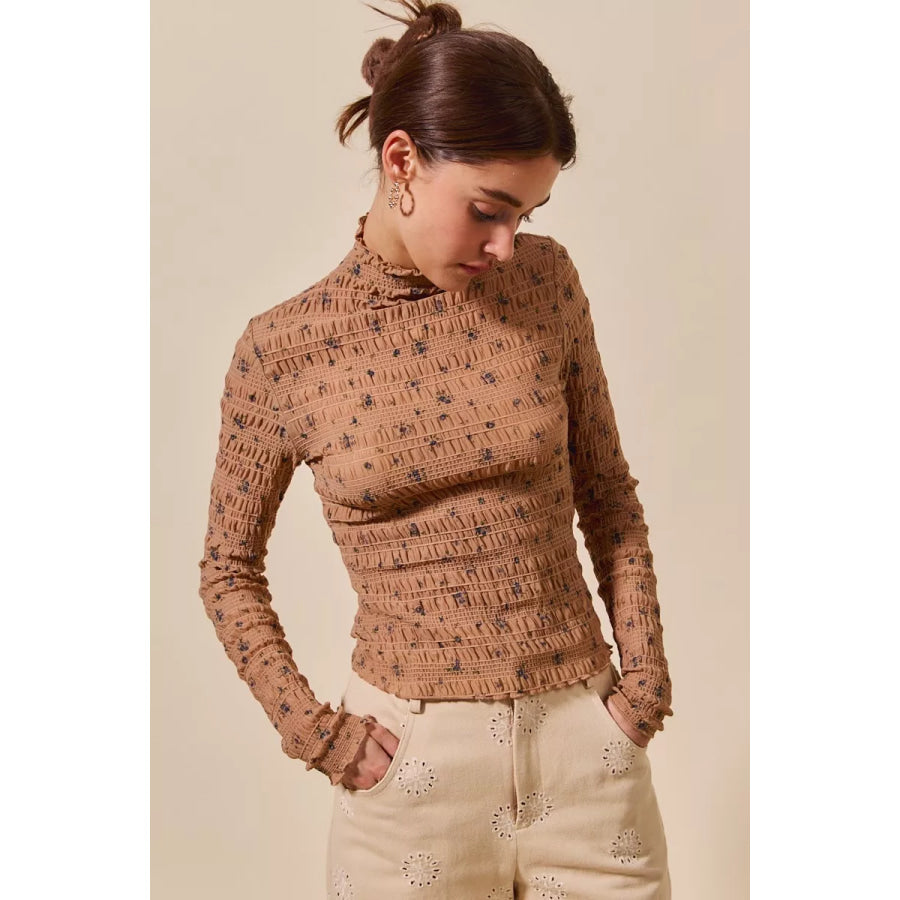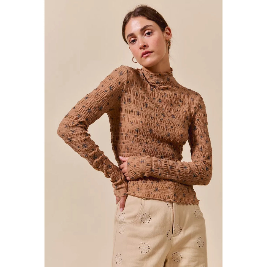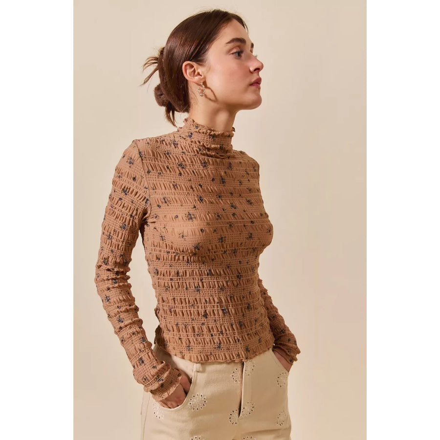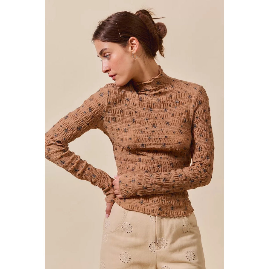 This floral print textured long sleeve knit top offers a charming and cozy look. The floral pattern adds a touch of femininity to the design. With long sleeves, this top is perfect for layering during the cooler seasons. The textured knit material provides both style and comfort. Whether dressed up or down, this top is a versatile piece that can be worn for various occasions.