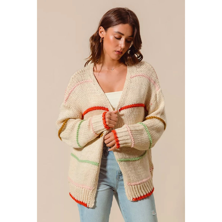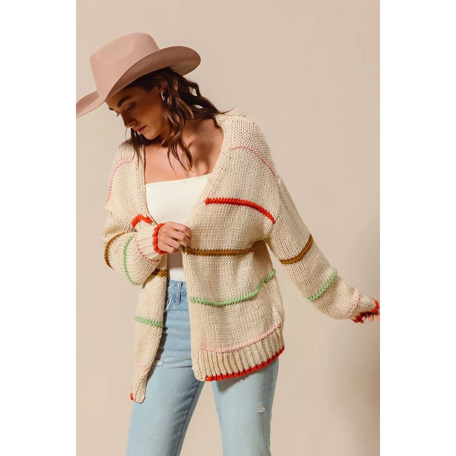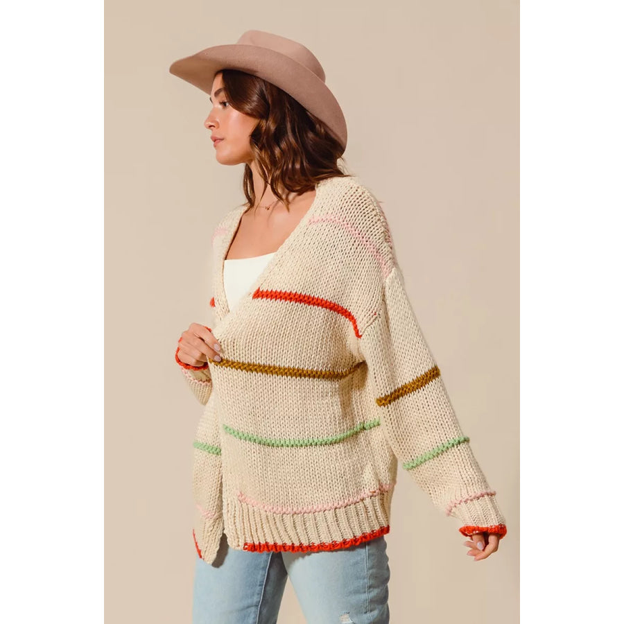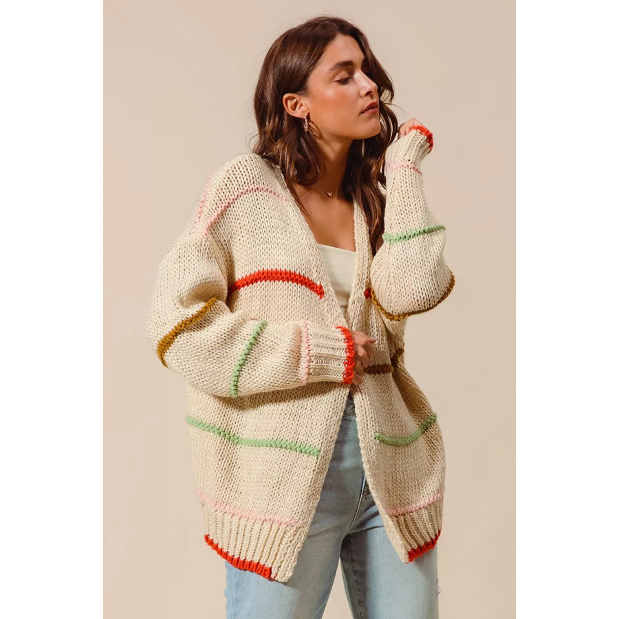 SO ME Loose Fit Multi Stripe Open Front Cardigan