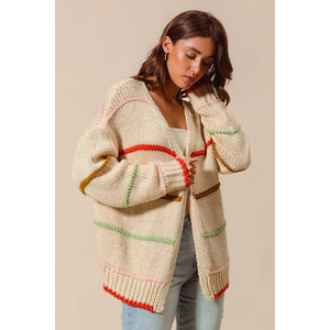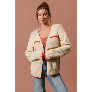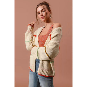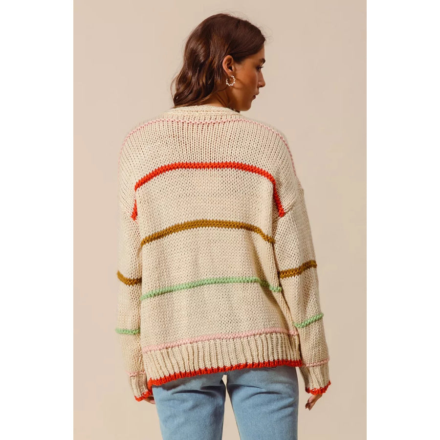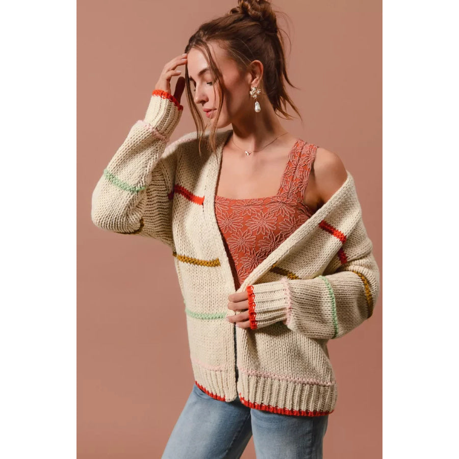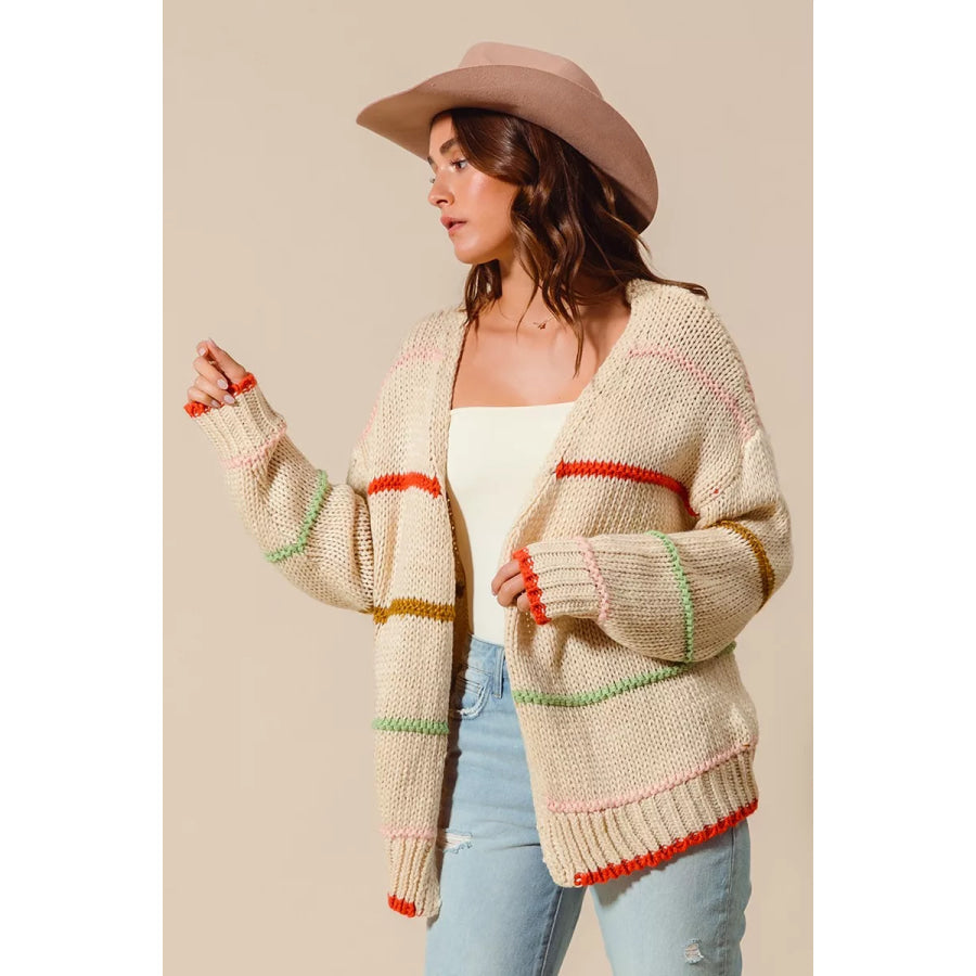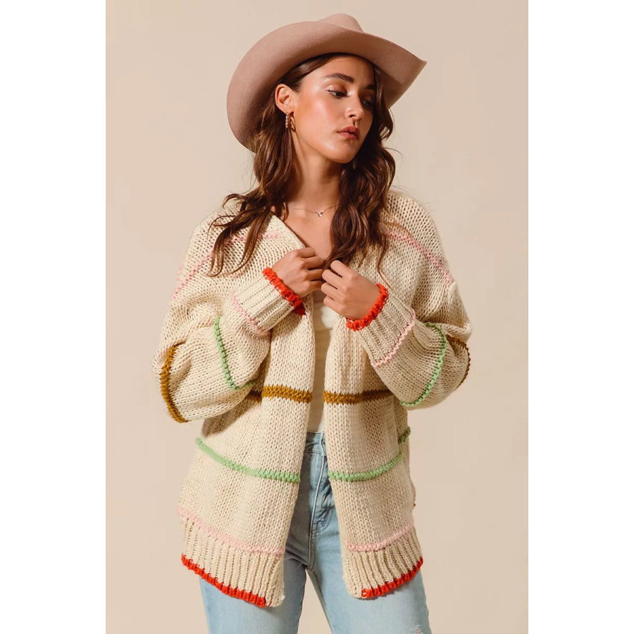 SO ME Loose Fit Multi Stripe Open Front Cardigan