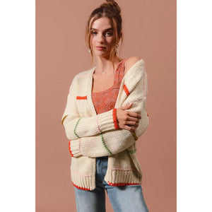 Stay cozy and fashionable with this Loose Fit Multi Stripe Open Front Cardigan. The multi-stripe design adds a playful and vibrant touch to this cardigan, perfect for adding a pop of color to your outfit. With a loose fit, this cardigan offers comfort and ease of movement. The open front design makes it versatile for layering over tops and dresses. Whether you're running errands or lounging at home, this cardigan is a stylish and comfortable choice. Pair it with jeans or leggings for a relaxed yet chic look that will keep you warm and on-trend.