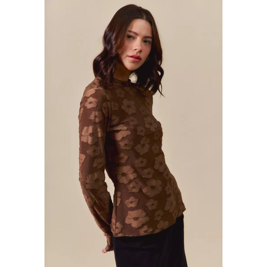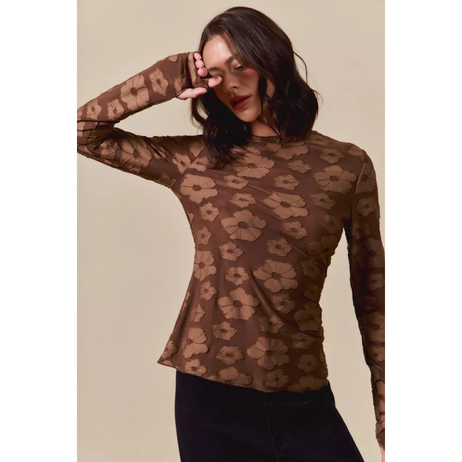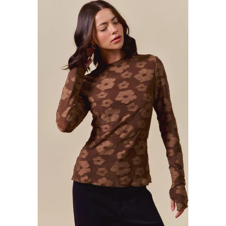 SO ME Stretched Jacquard Casual Tops with Thumb Opening