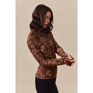 These casual tops are crafted from a stretchy jacquard fabric that offers both comfort and style. The thumb openings add a trendy and practical detail, perfect for keeping your hands warm on chilly days. The jacquard design gives these tops a unique and textured look, making them a standout piece in your wardrobe. Whether you're running errands or lounging at home, these tops are versatile and easy to wear. Elevate your casual outfit with these chic and cozy jacquard tops featuring thumb openings.