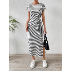 Tied Striped Round Neck Short Sleeve Tee Dress