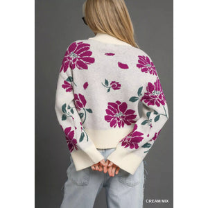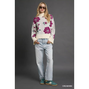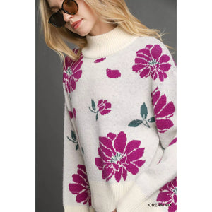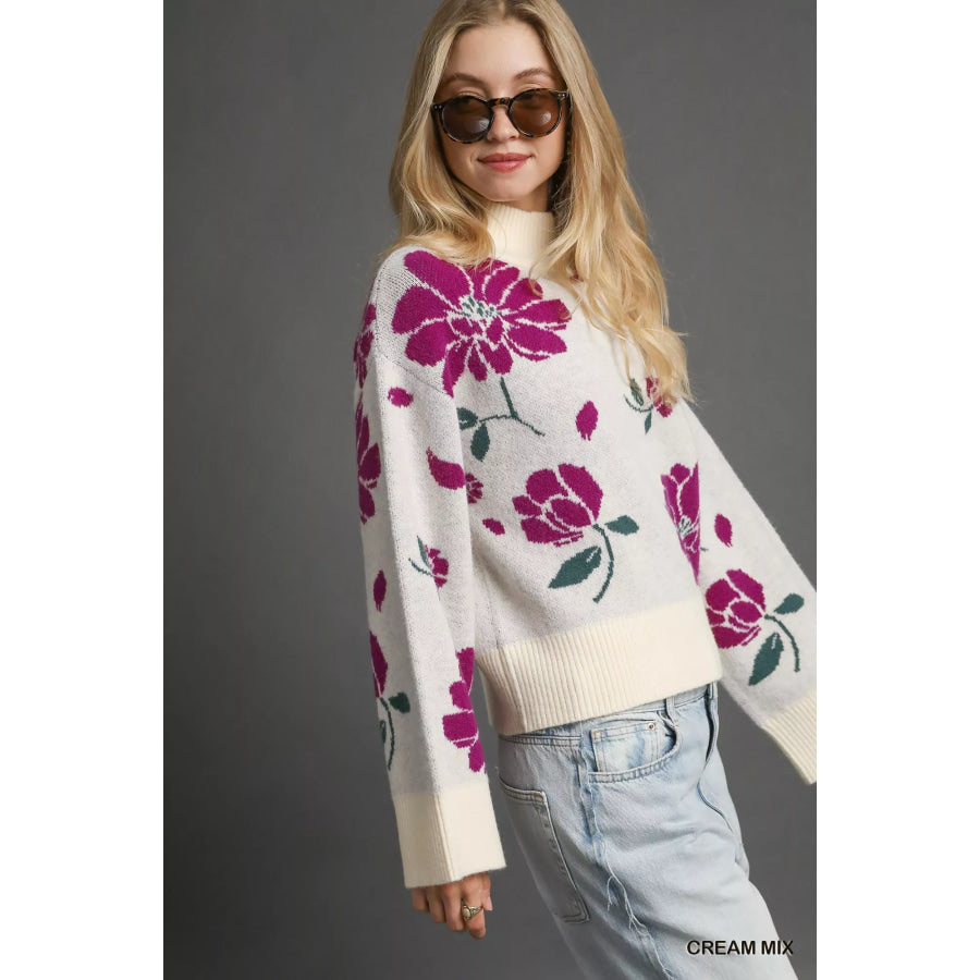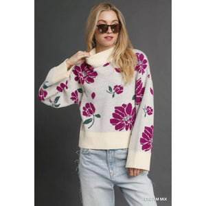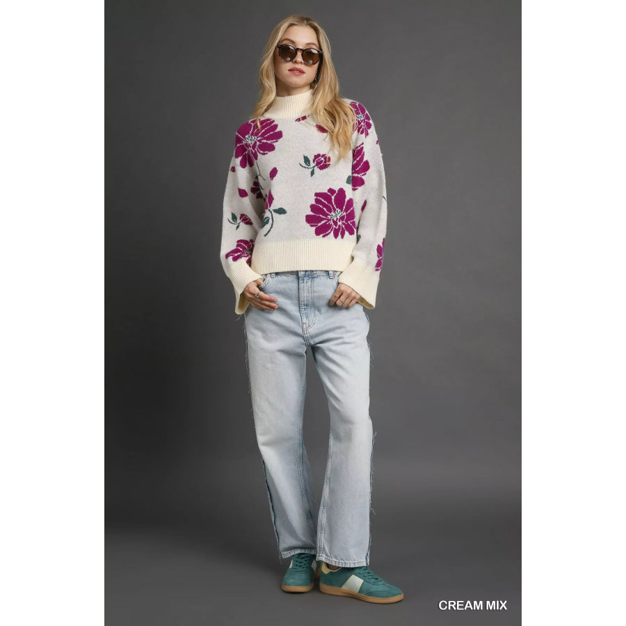 Umgee Floral Patterned Mock Neck Sweater