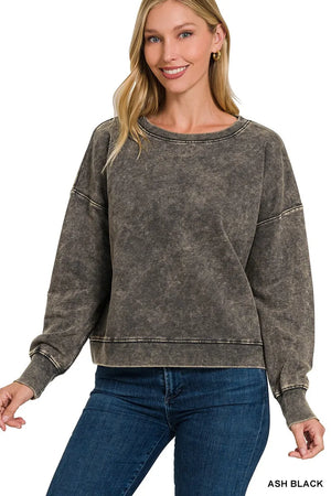 Zenana French Terry Acid Wash Boat Neck Sweatshirt