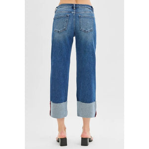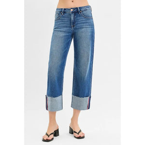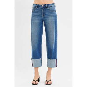 RISEN Full Size Tummy Control Mid Rise Crop Wide Cuffed Jeans Plus Size