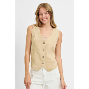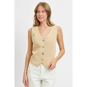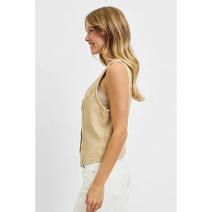 RISEN Full Size V Neck Button Down Vest Plus Size
