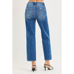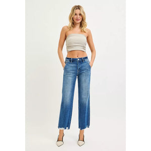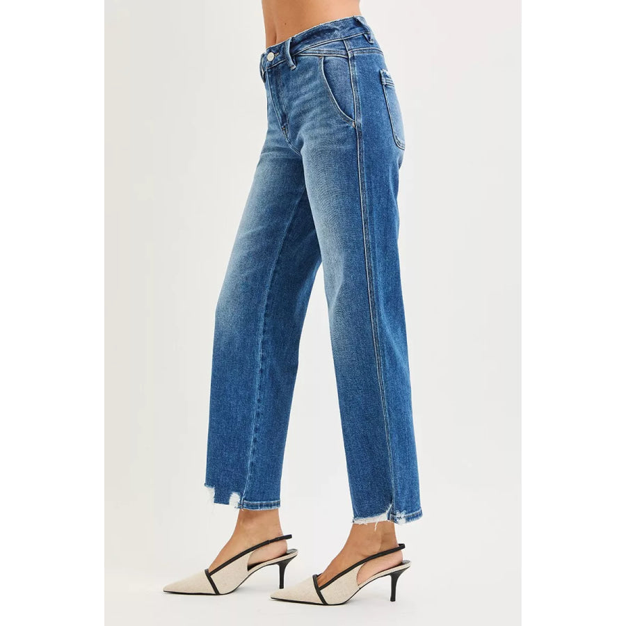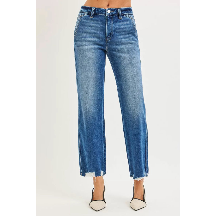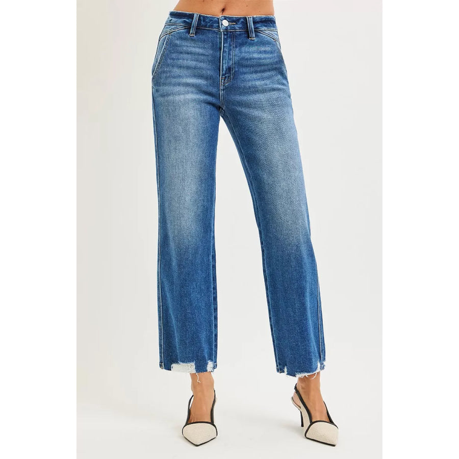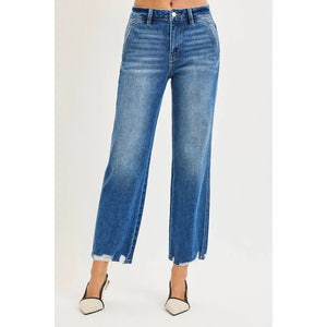 RISEN High Rise Ankle Straight Distressed Hem Detail Jeans