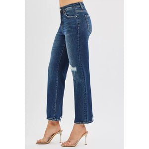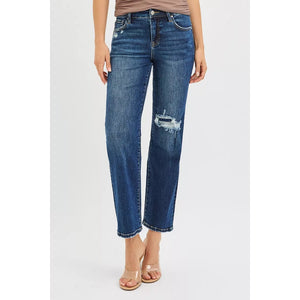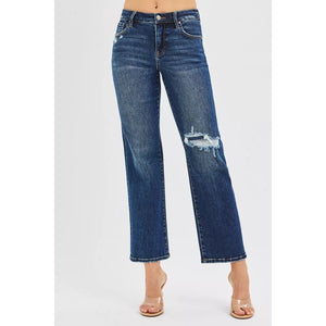 RISEN High Rise Crop Slim Straight Jenas with Hidden Knee Patch