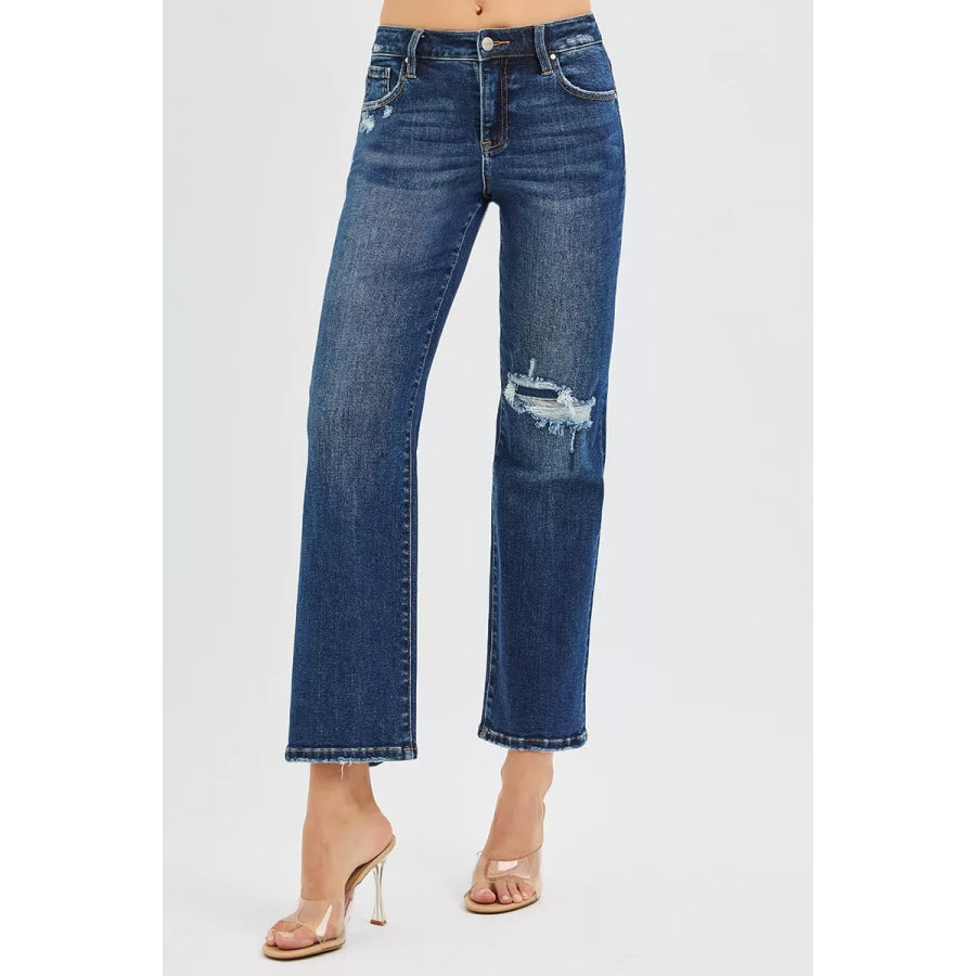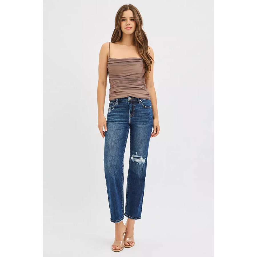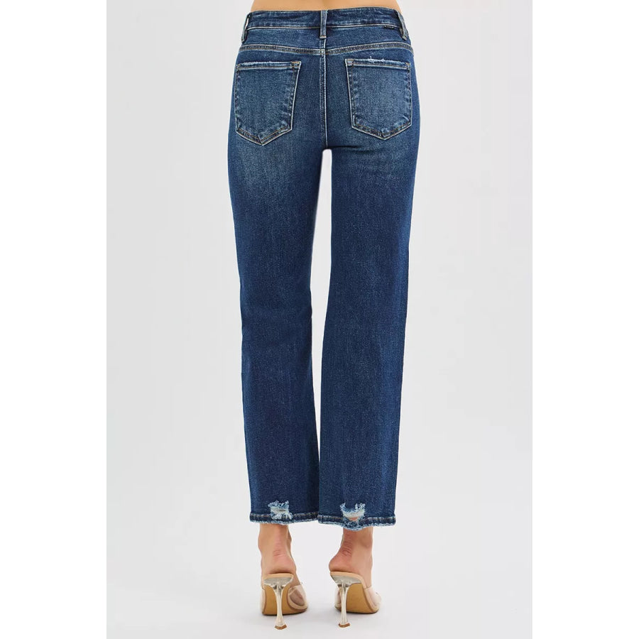 RISEN High Rise Crop Slim Straight Jenas with Hidden Knee Patch