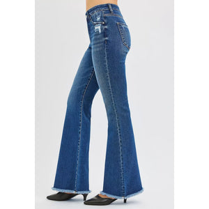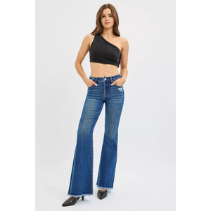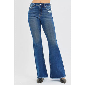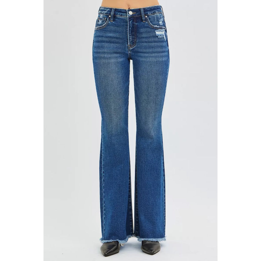 Step into retro-inspired style with these high rise flare jeans that exude 70s vibes. The high rise waist accentuates your curves and elongates your legs for a flattering silhouette. The dramatic flare leg adds a statement-making touch to your outfit, perfect for a bohemian or vintage look. Pair these jeans with platform shoes or boots to enhance the retro aesthetic. Embrace a groovy vibe with these high rise flare jeans for a fun and fashion-forward ensemble.