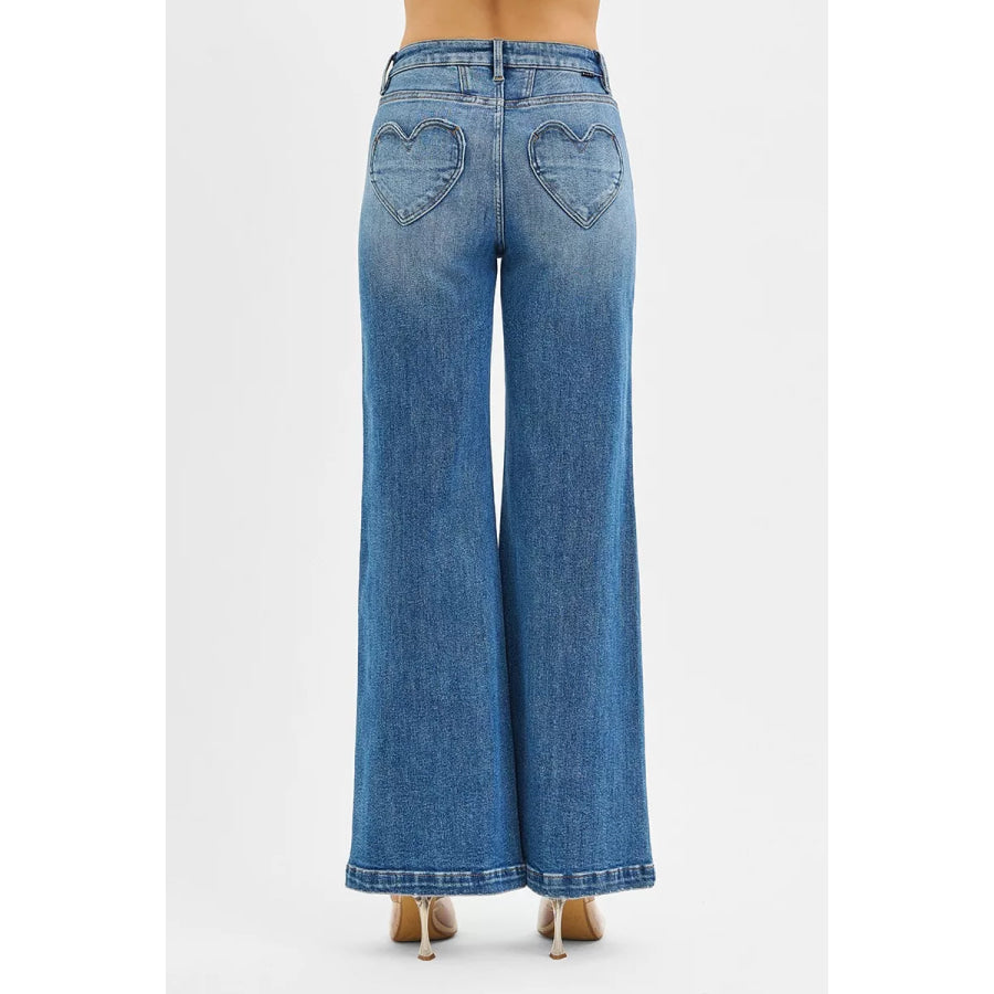 RISEN High Rise Wide Leg Jenas with Front Yoke and Heart Back Pocket