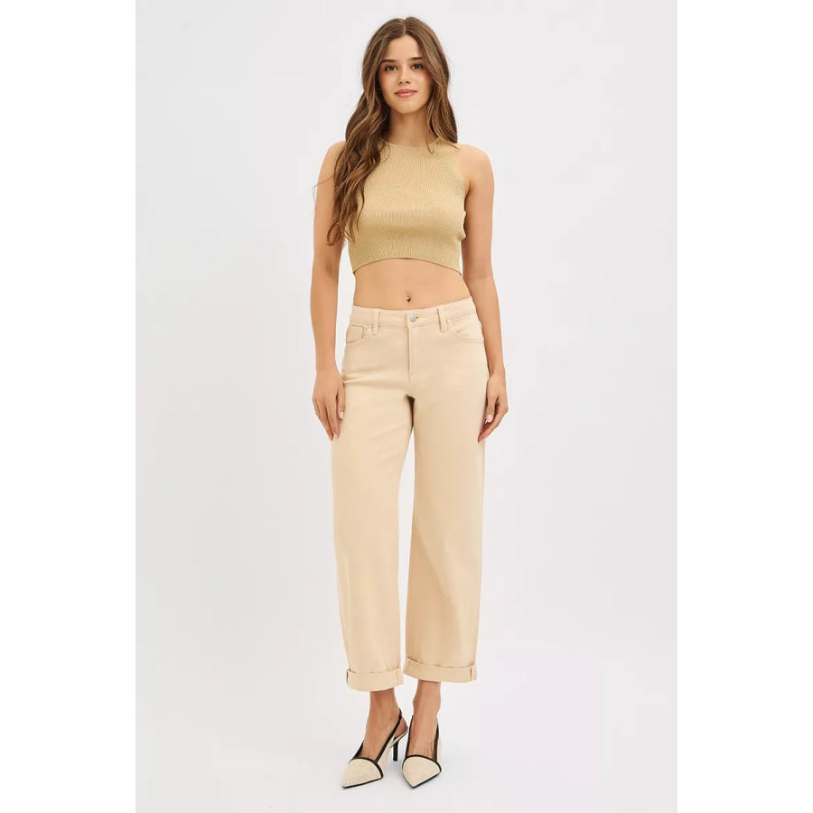 RISEN Tummy Control Mid Rise Ankle Barrel Relaxed Baggy