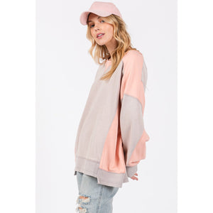 SAGE + FIG Color Block Round Neck Sweatshirt