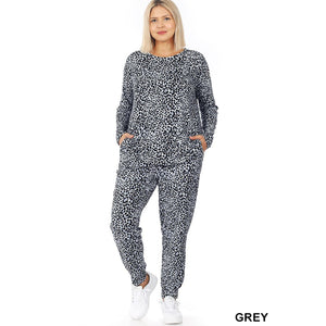Buttery Soft Leopard Print Top and Jogger Set - Grey