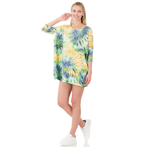 New! Tie Dye Drop Shoulder Boxy Top with Side Pockets