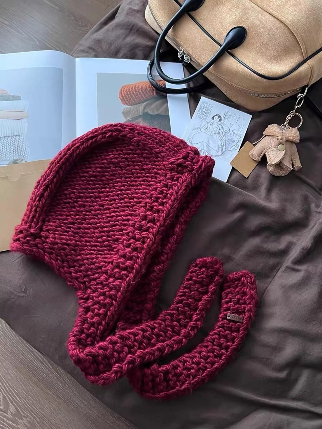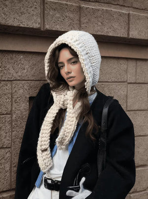 Knitted Hooded Scarf Hat