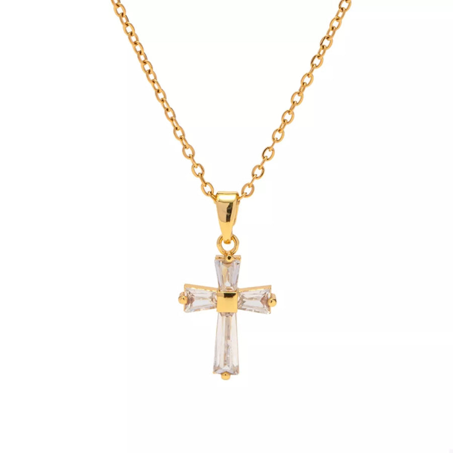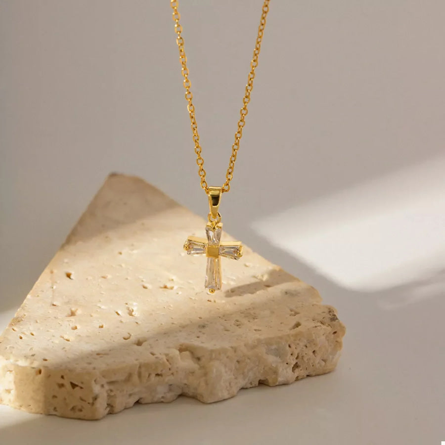 18K Gold-Plated Stainless Steel Zircon Cross Necklace