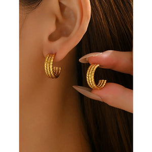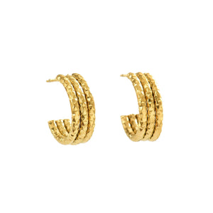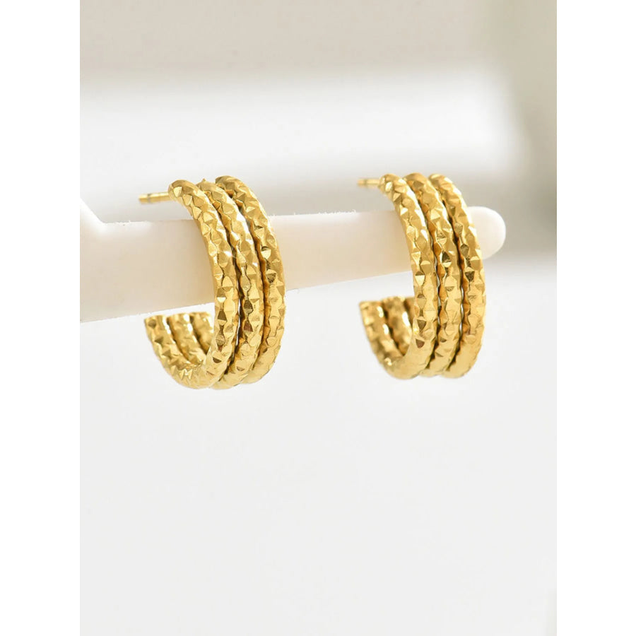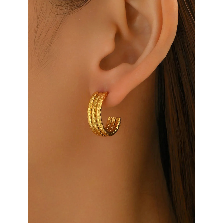 18K Gold-Plated Textured Triple Band Hoop Earrings