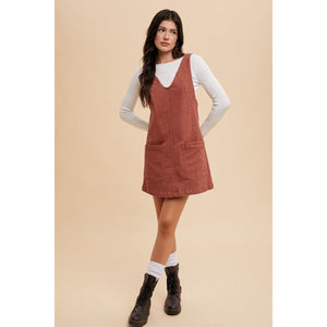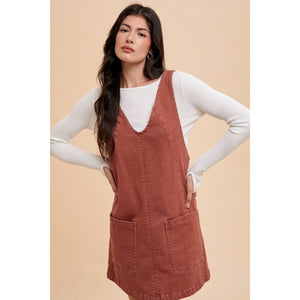 Annie Wear V-Neck Adjustable Strap Denim Overall Dress with Pockets