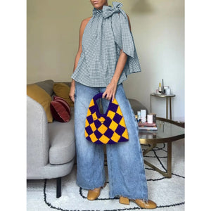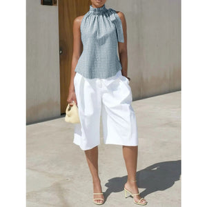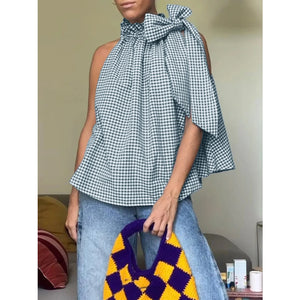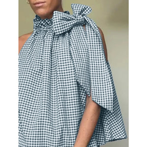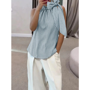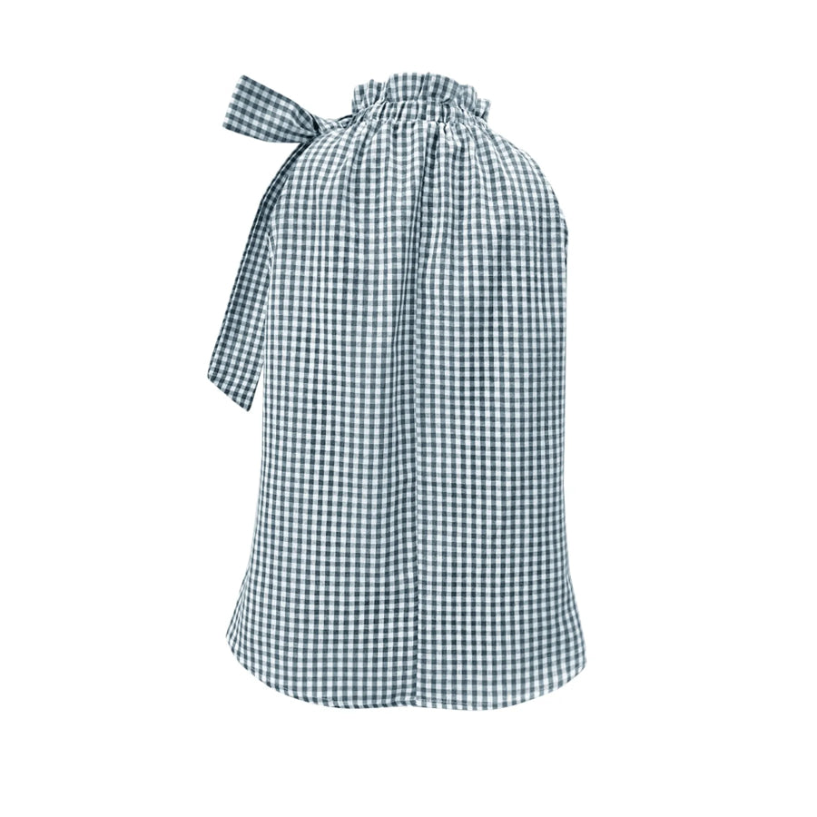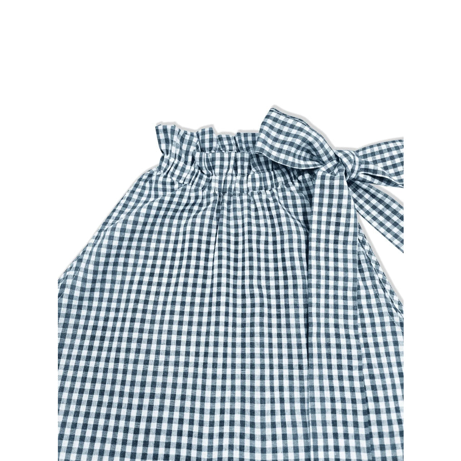 Asymmetric Gingham Bow Tie Sleeveless Top