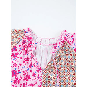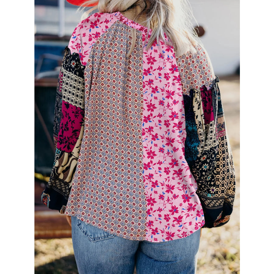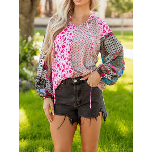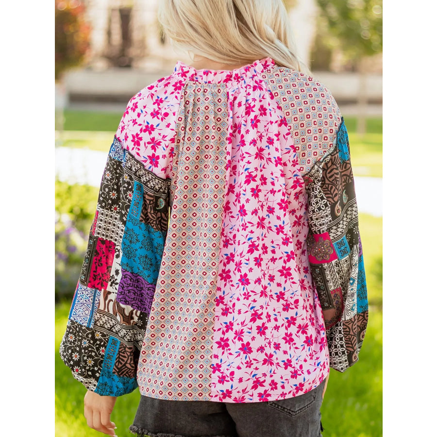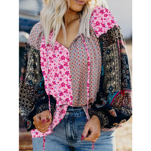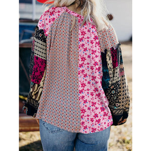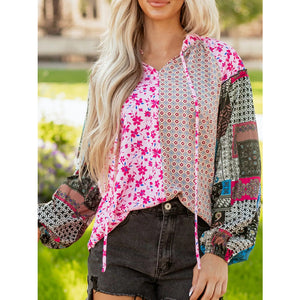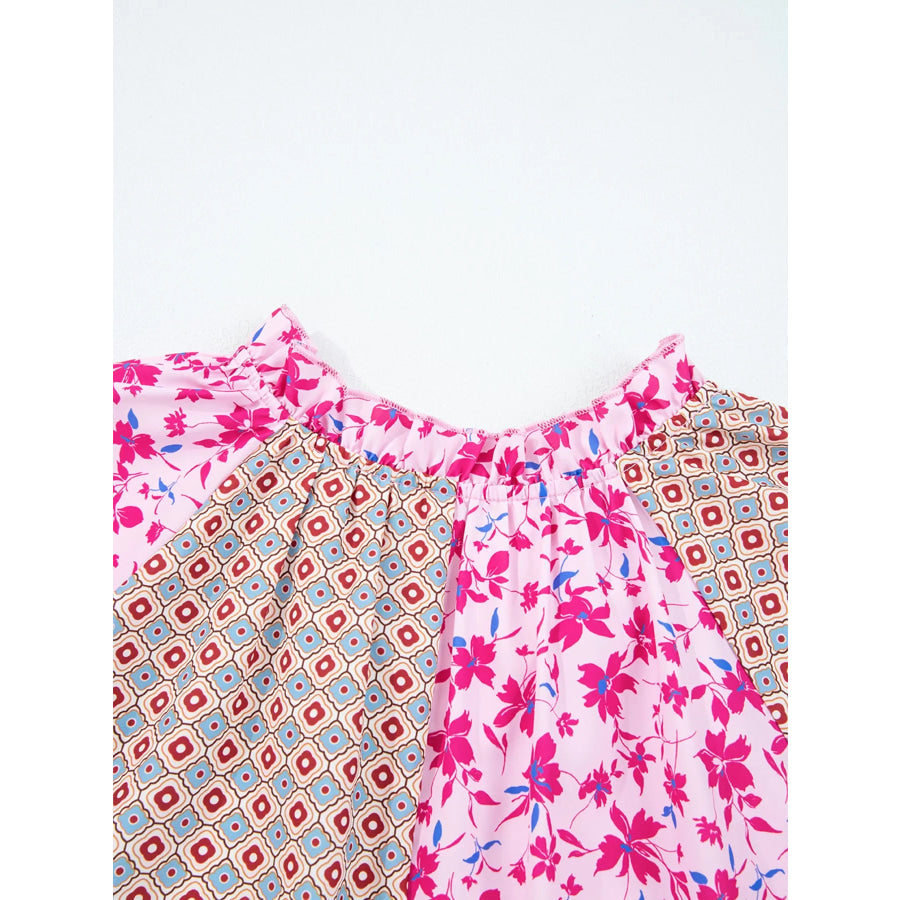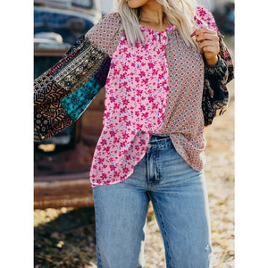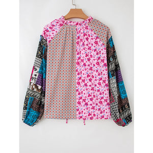 Boho Mixed Floral Drop Shoulder Bubble Sleeve Blouse