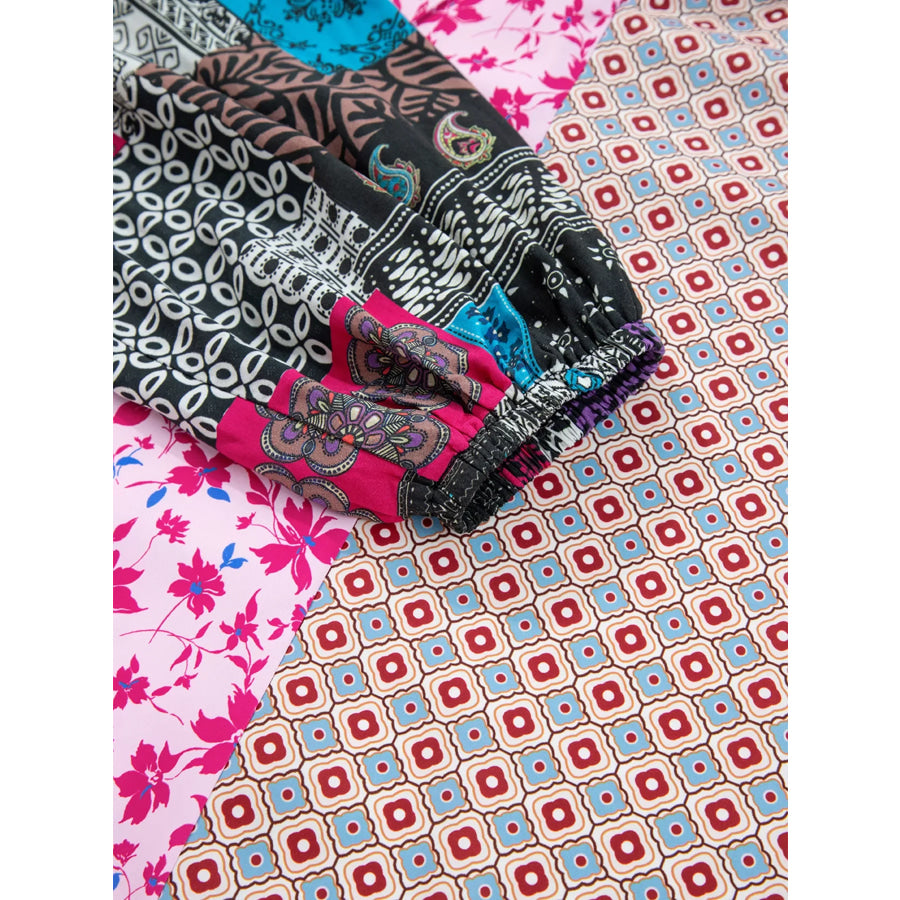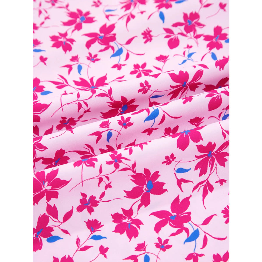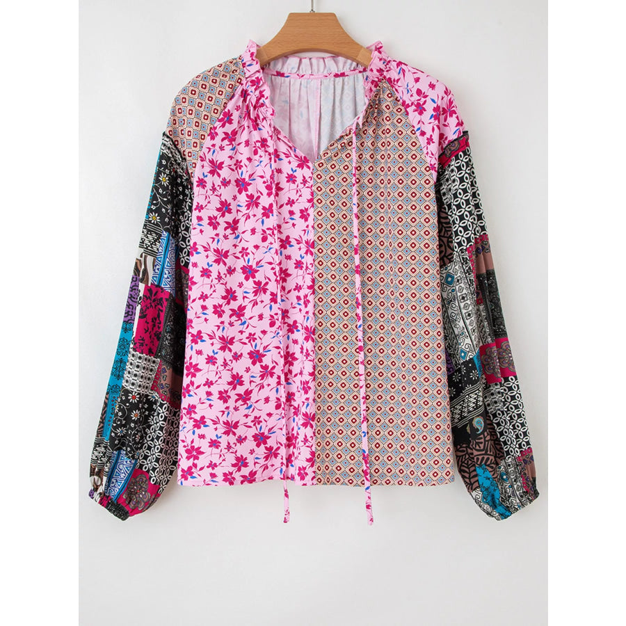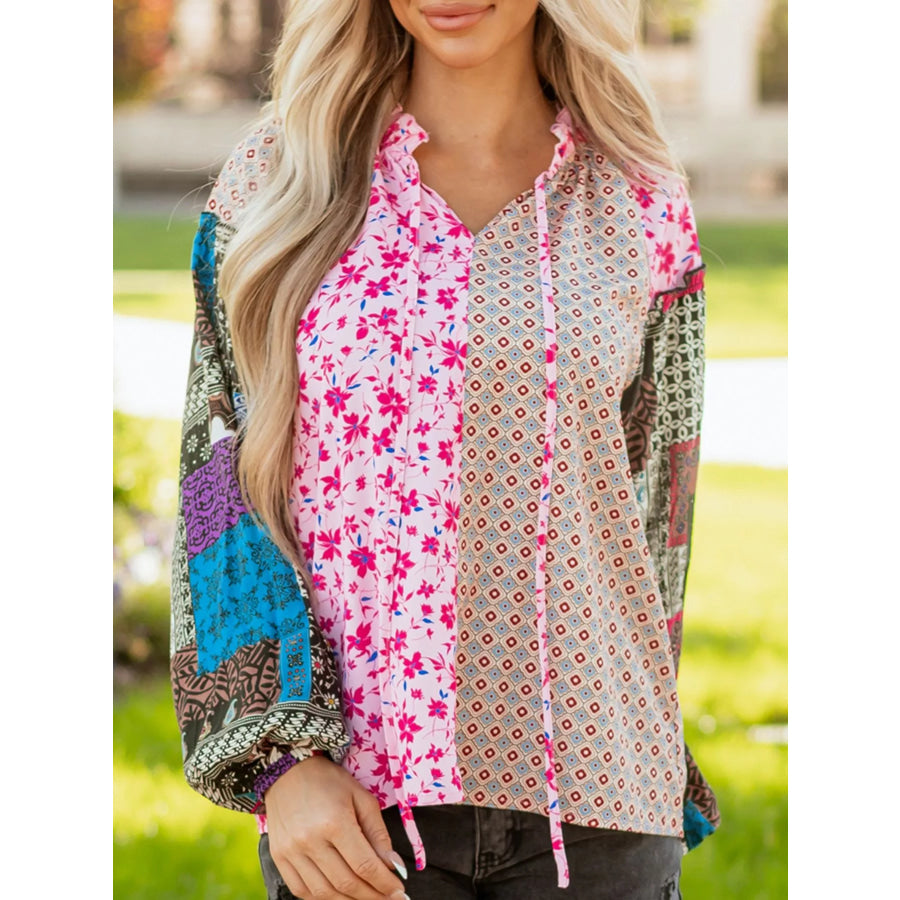 Boho Mixed Floral Drop Shoulder Bubble Sleeve Blouse