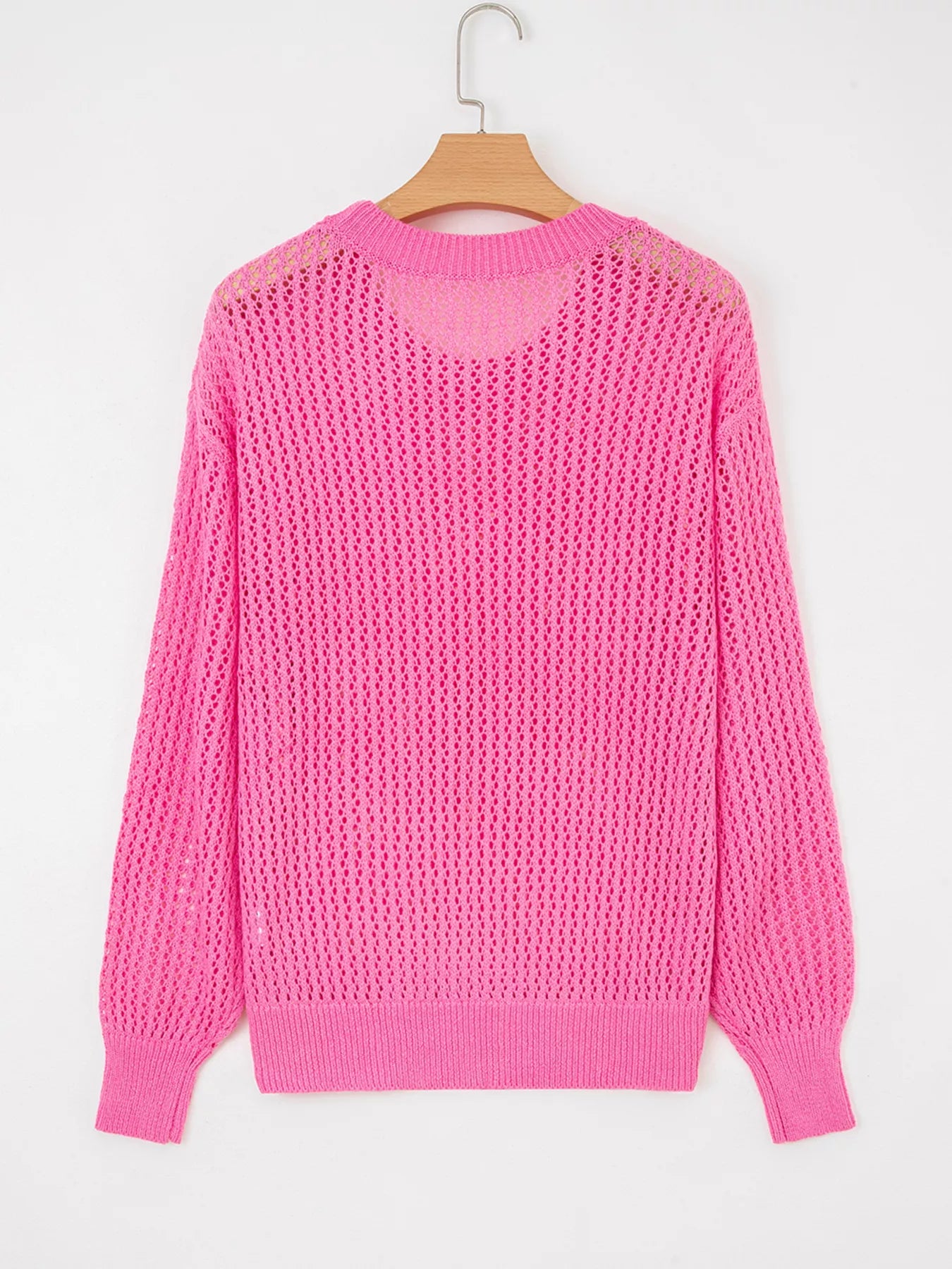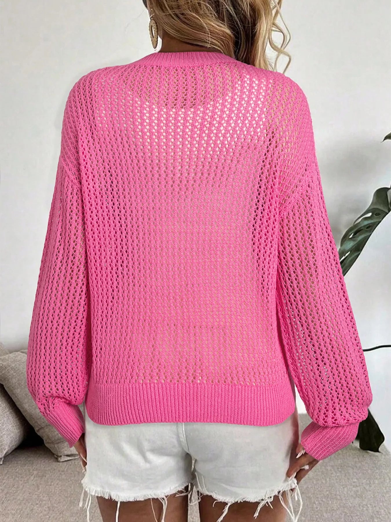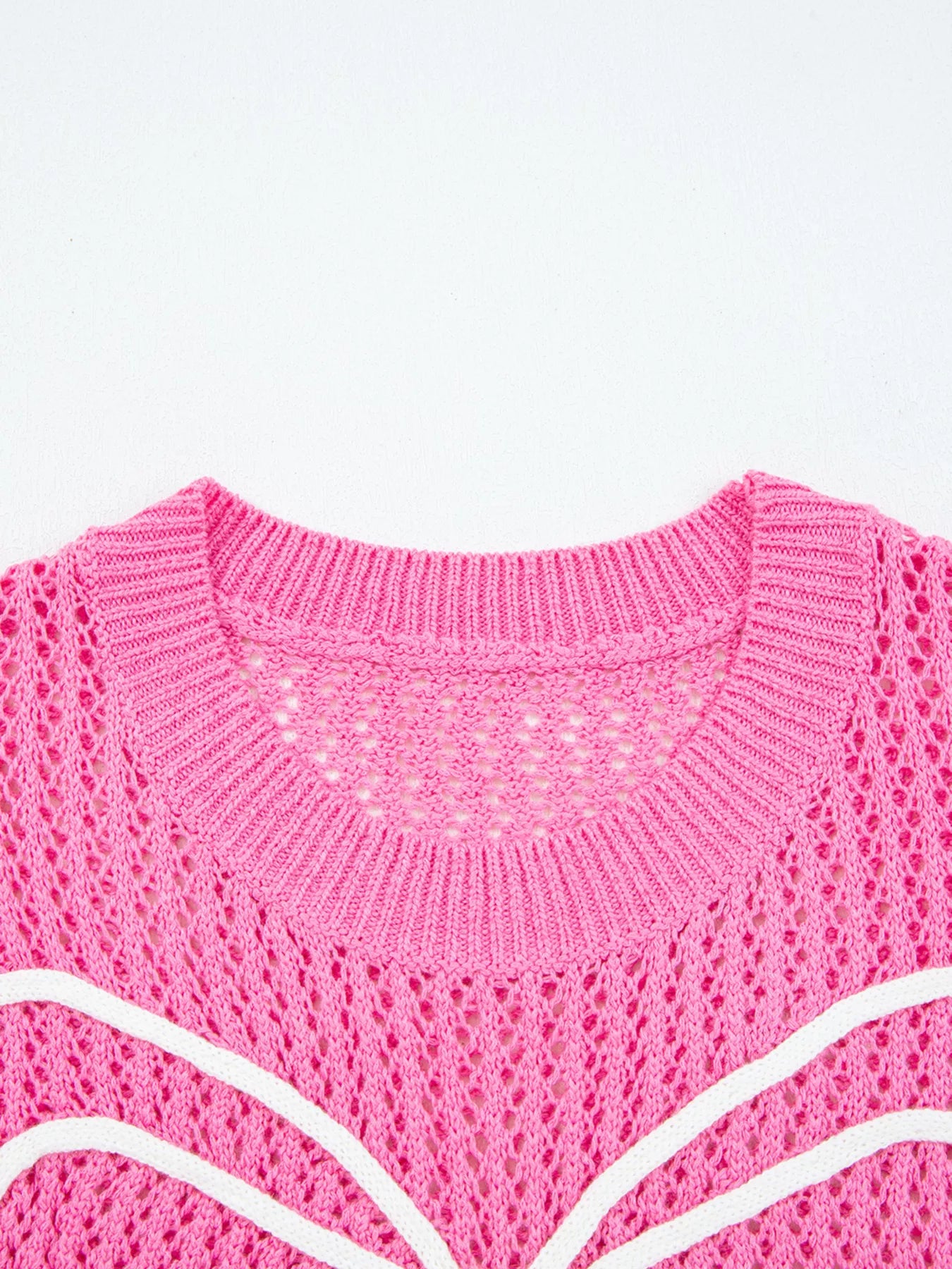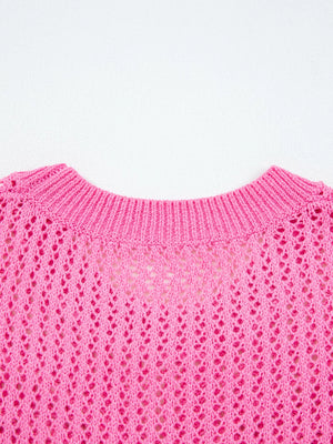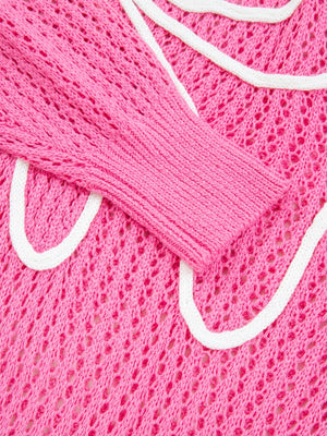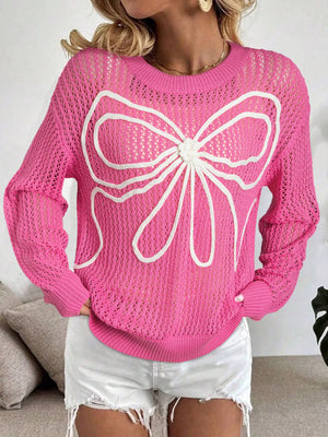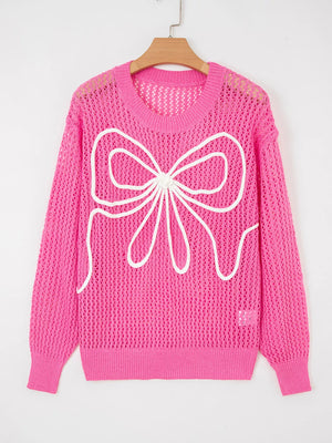Bow Decor Hollow Out Knitted Drop Shoulder Sweater