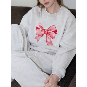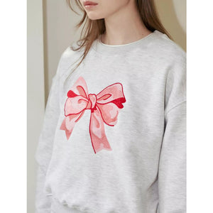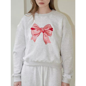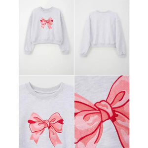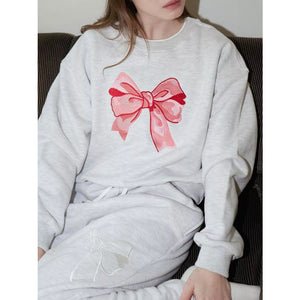 Bow Graphic Round Neck Long Sleeve Sweatshirt