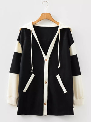 Button-Down Color Block Hoodie