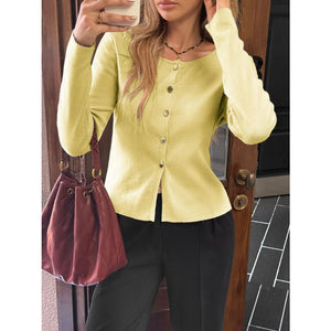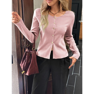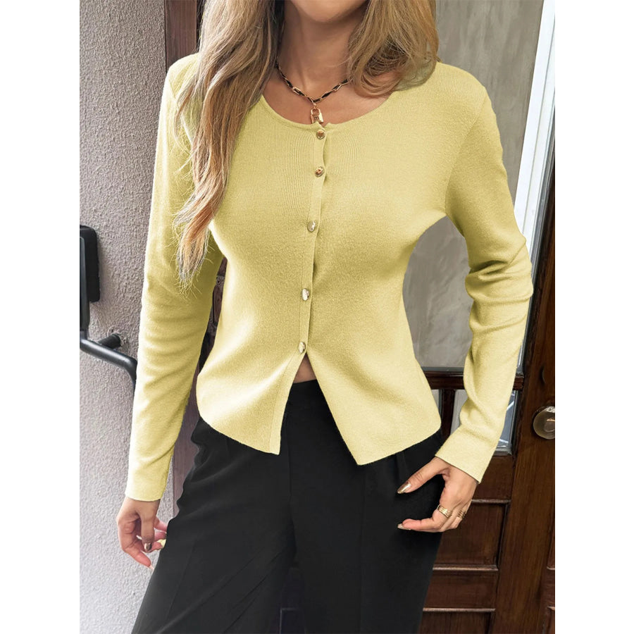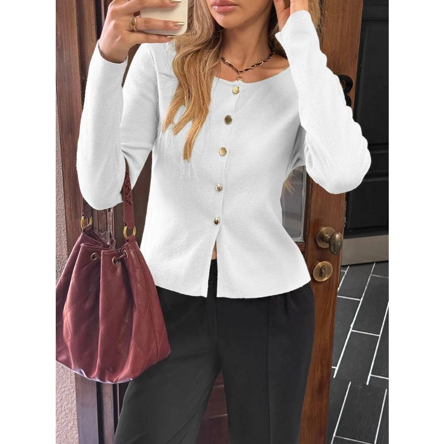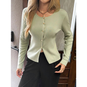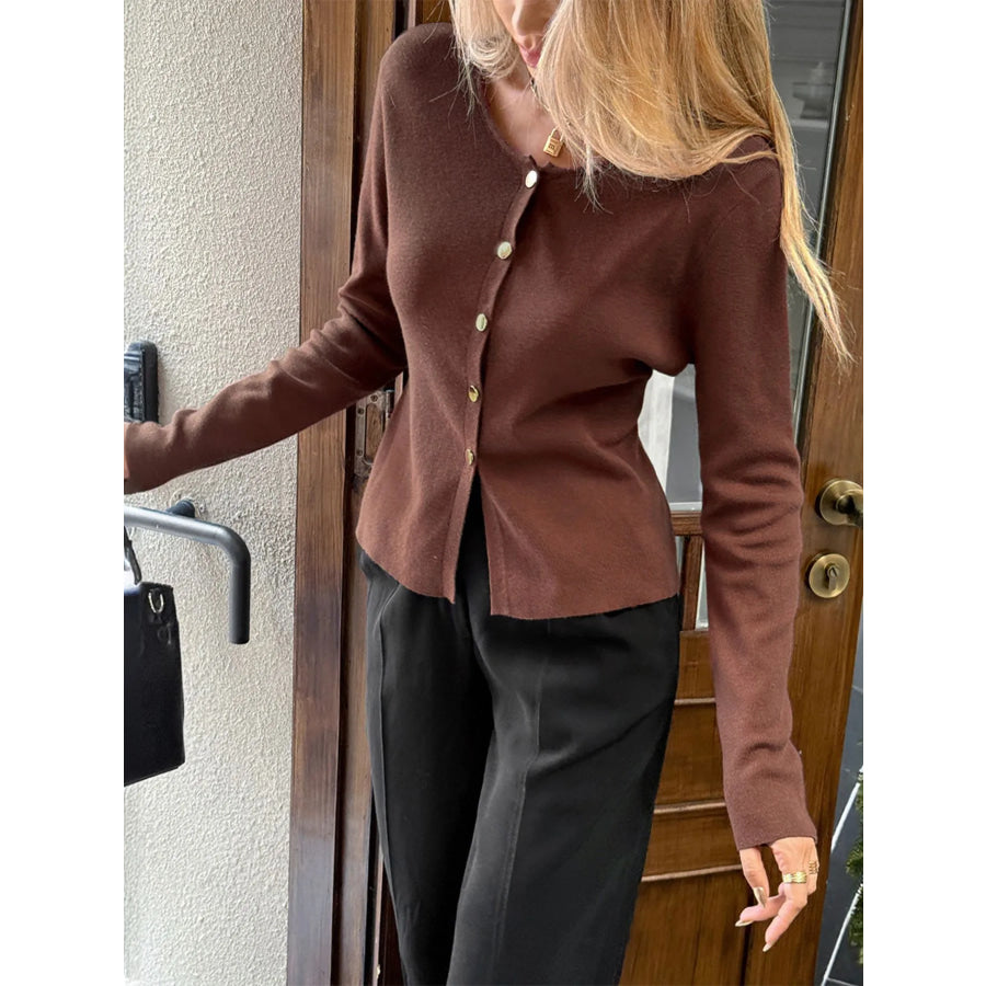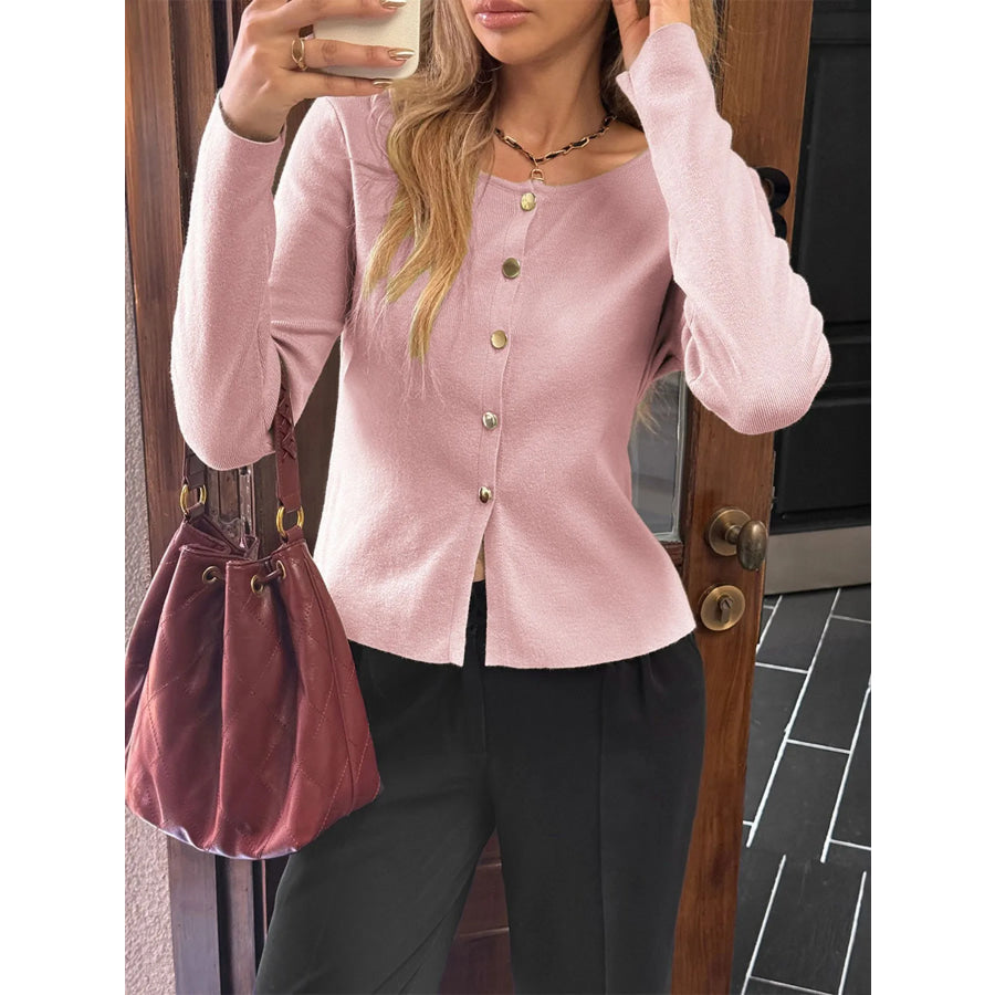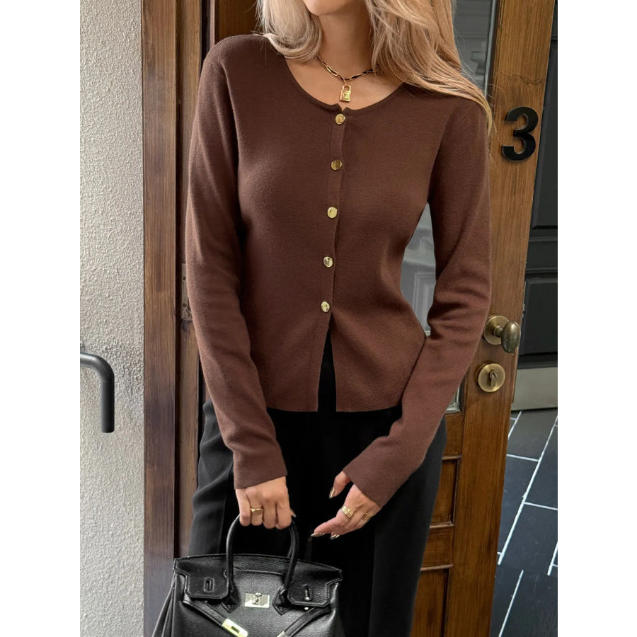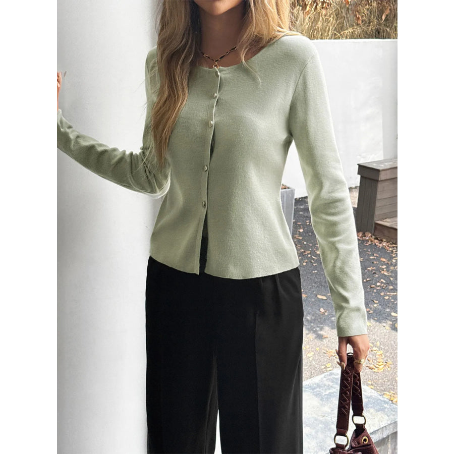Button-Up Long Sleeve Knit Cardigan