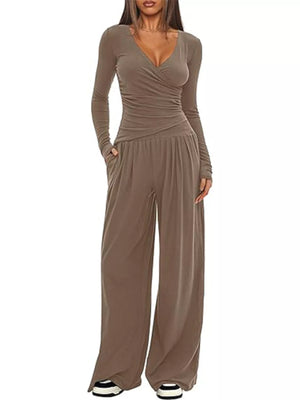Casual Long Sleeve Top and Pants Two-Piece Set