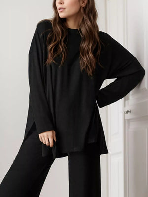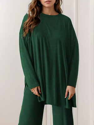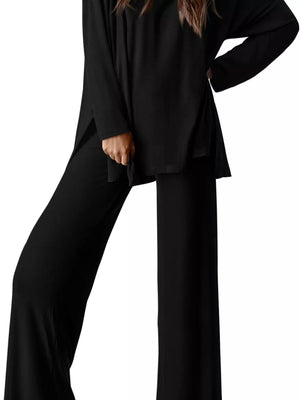 Casual Loose Long Sleeve Top and Wide Leg Pants Set