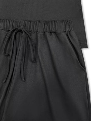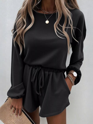 Casual Solid Color Top and Drawstring Shorts Two-Piece Set