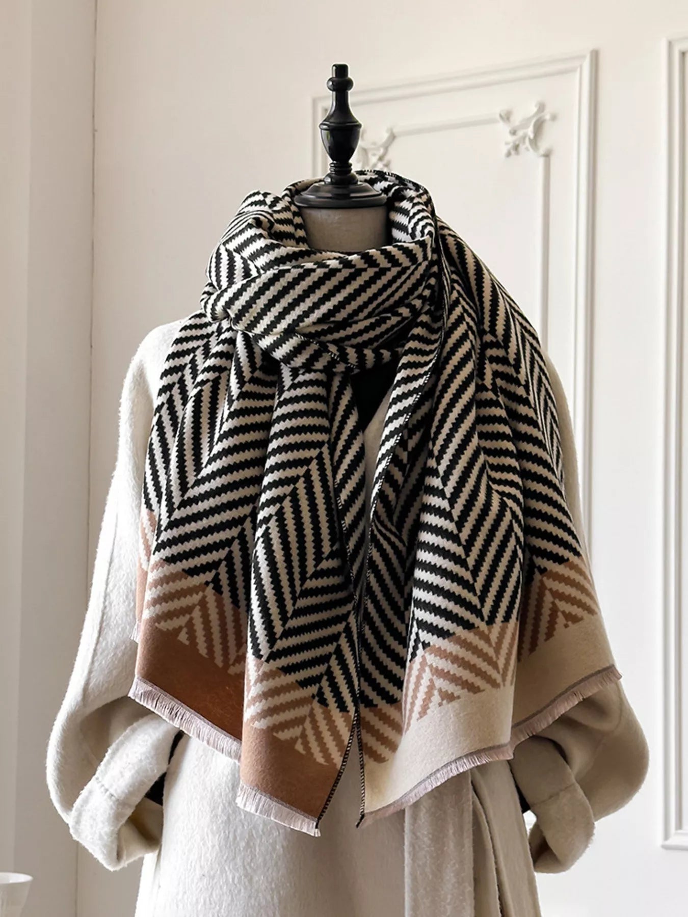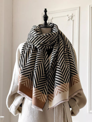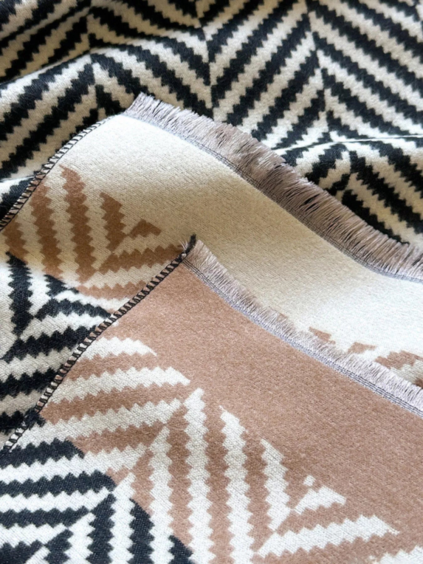 Chevron Pattern Raw Hem Scarf