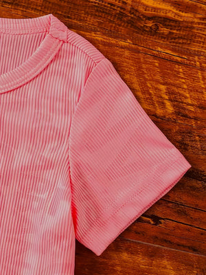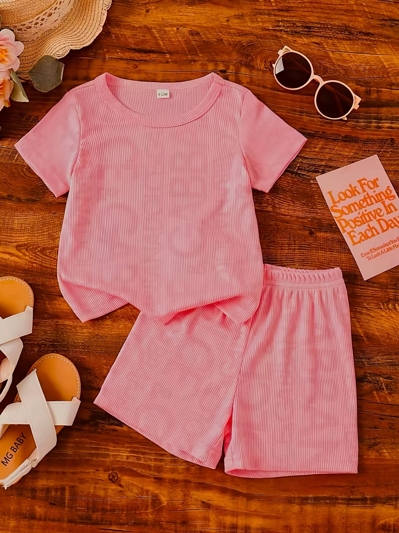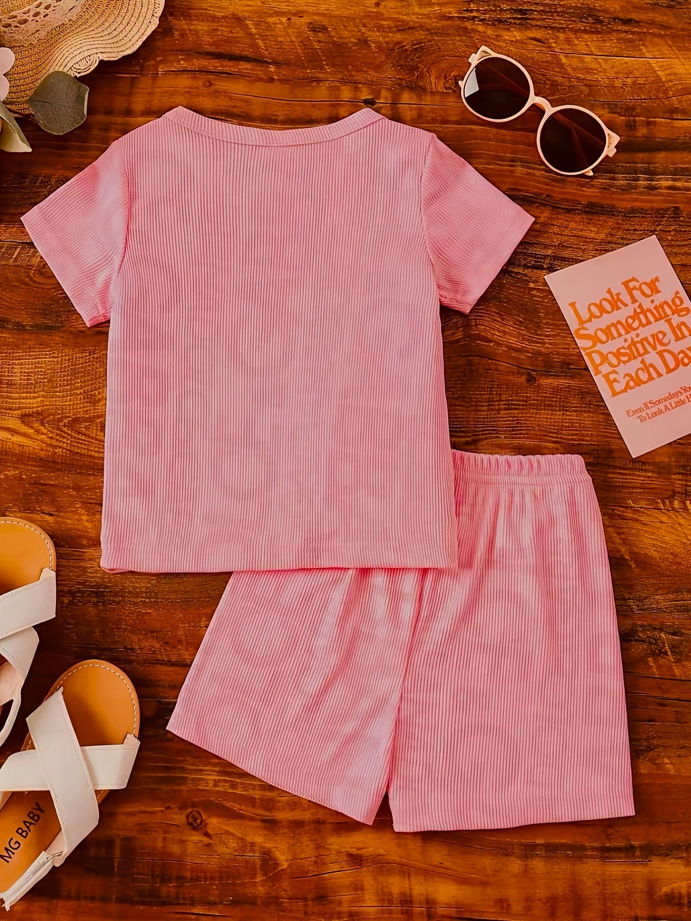 Children's Casual Ribbed Knit Tee and Shorts Two-Piece Set