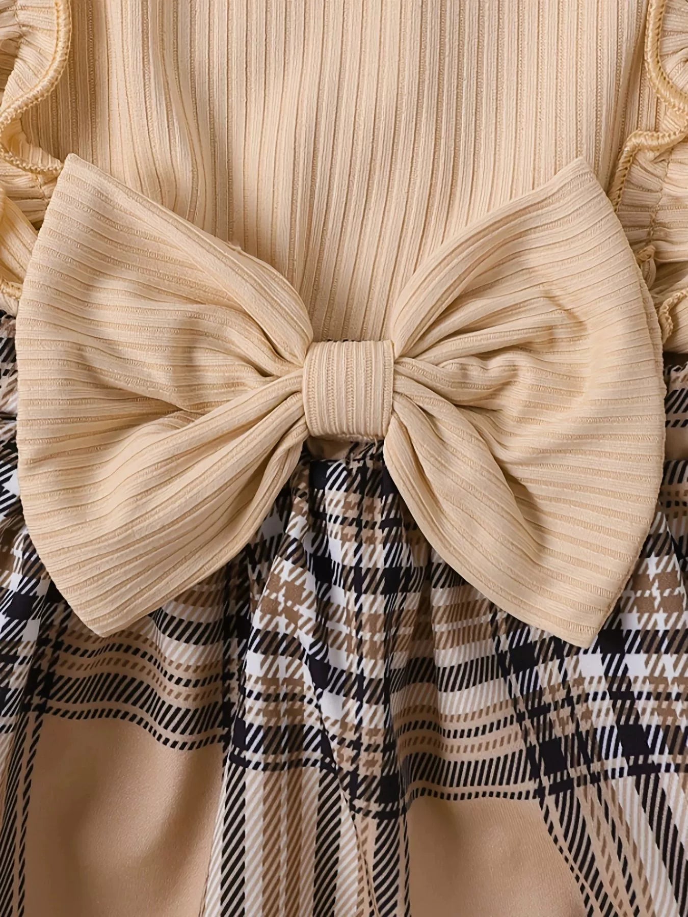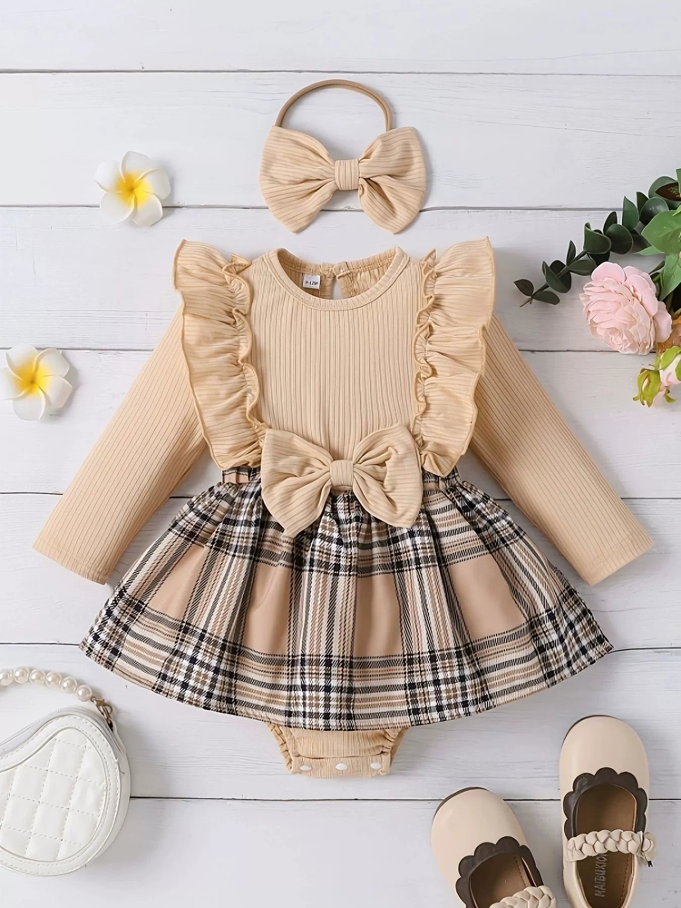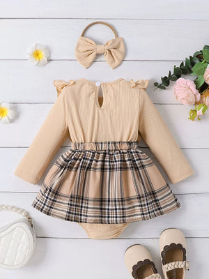 Children's Ruffle Trim Plaid Dress with Headband Set