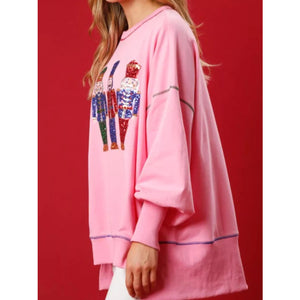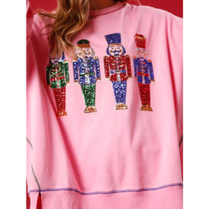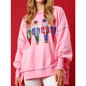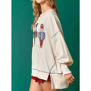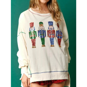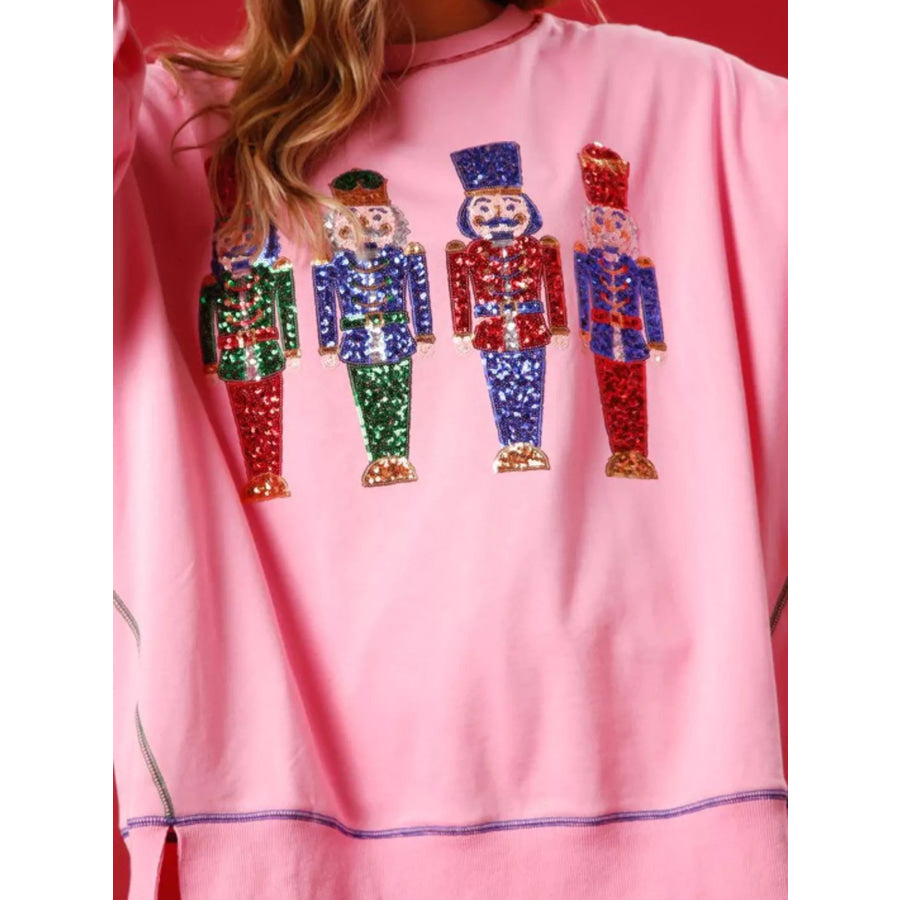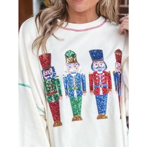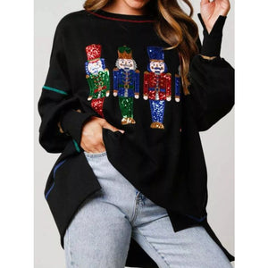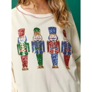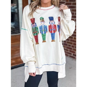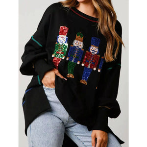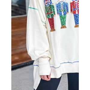 Christmas Nutcracker Sequin Round Neck Sweatshirt
