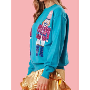 Christmas Sequin Nutcracker Dropped Shoulder Sweatshirt