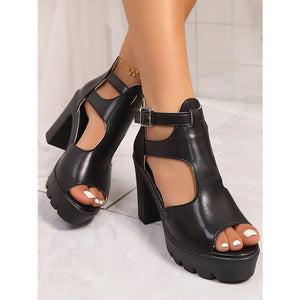 Chunky Platform Block Heel Sandals with Ankle Strap