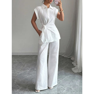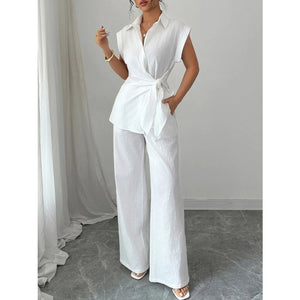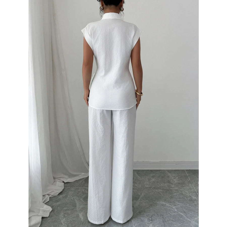 Collared Neck Cap Sleeve Top and Pants Set