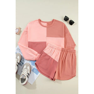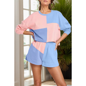 Color Block Round Neck Top and Shorts Set