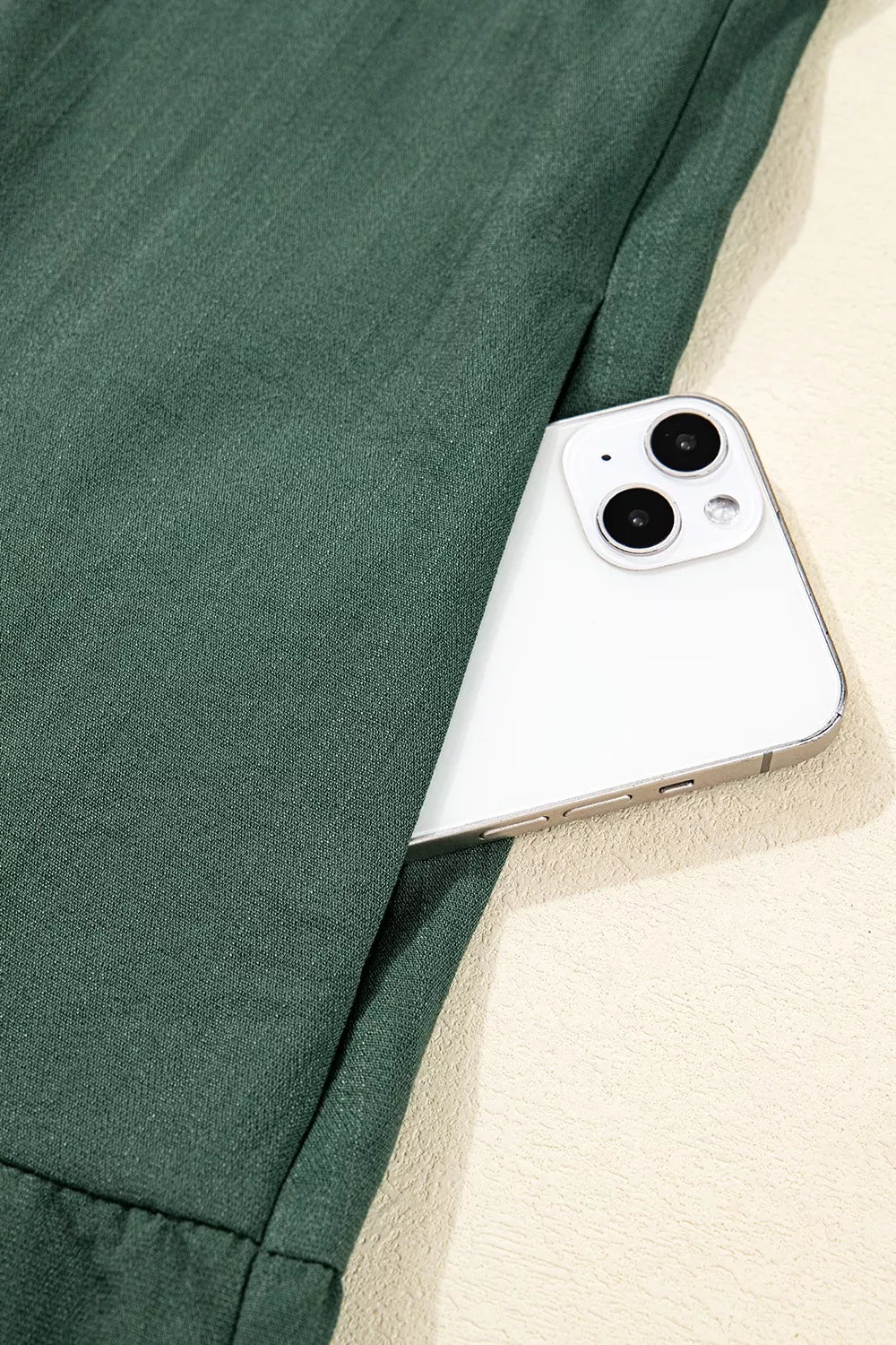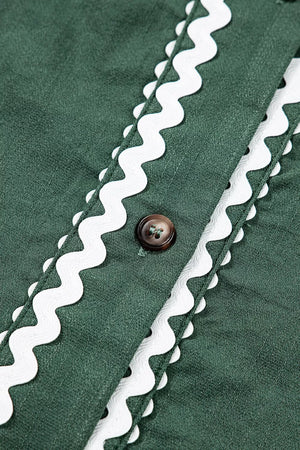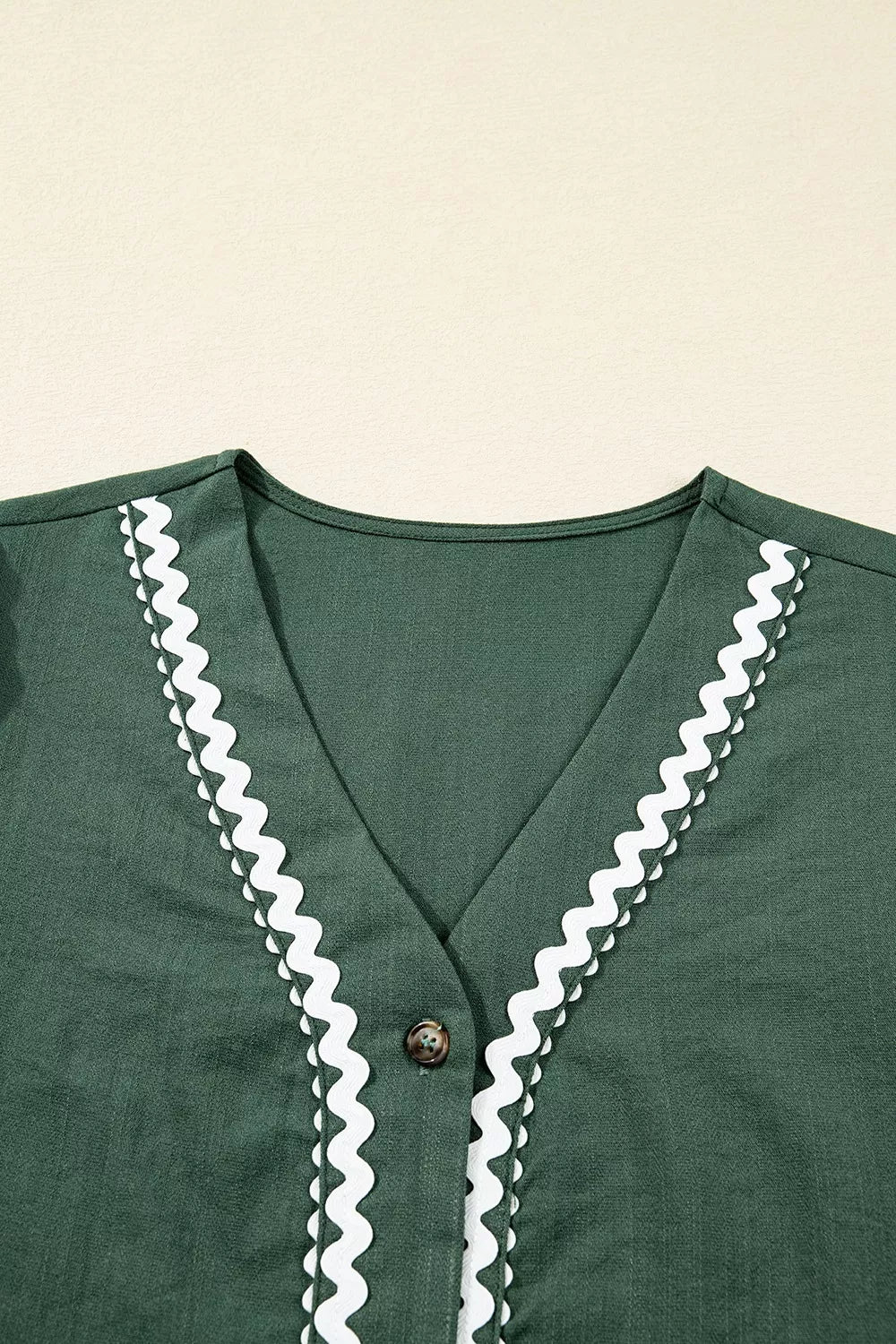 Contrast Ricrac Trim Button V Neck Knotted Bracelet Sleeve Shift Dress