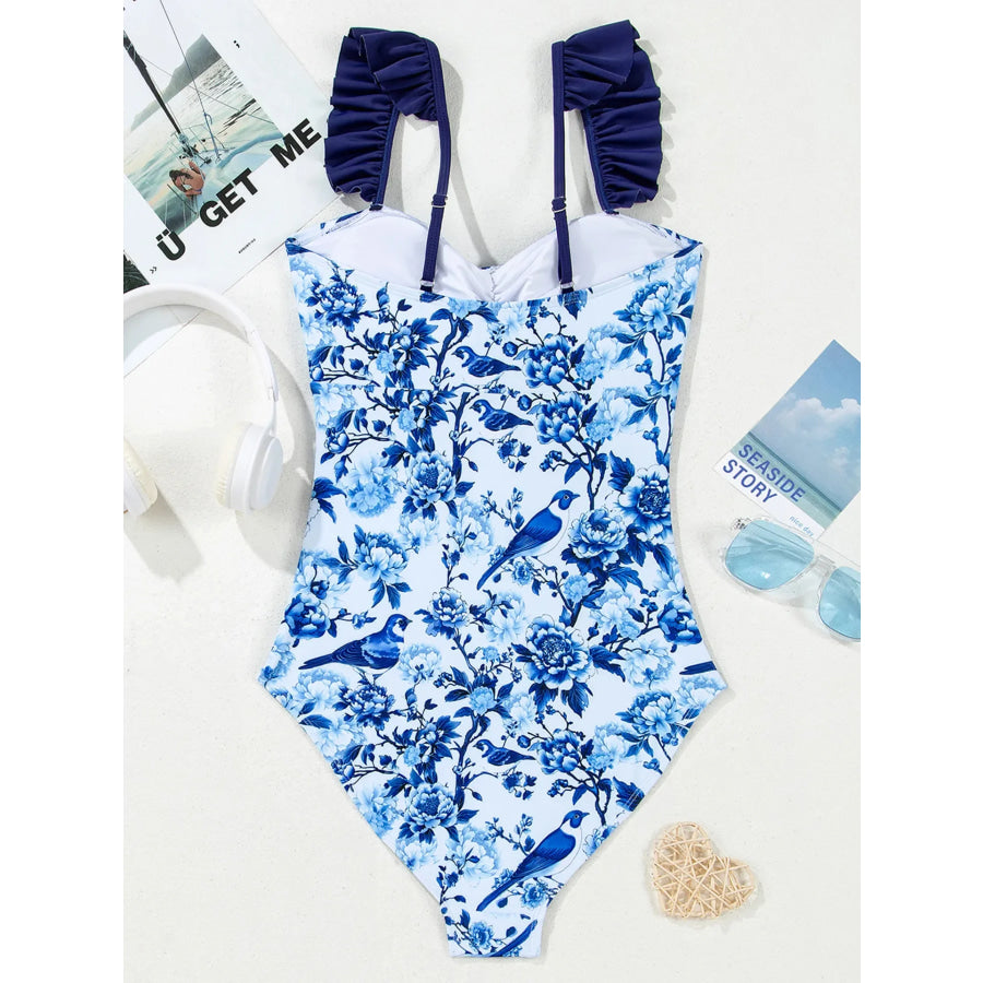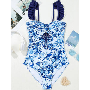 Cutout Ruffled Spaghetti Strap One-Piece Swimwear