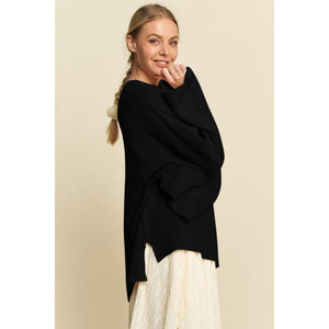 Davi & Dani High-Low Round Neck Drop Shoulder Sweater