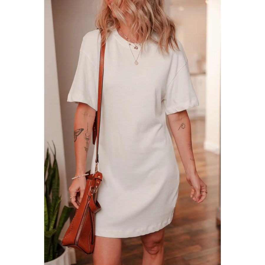 Drop Shoulder Crew Neck Shift T Shirt Dress