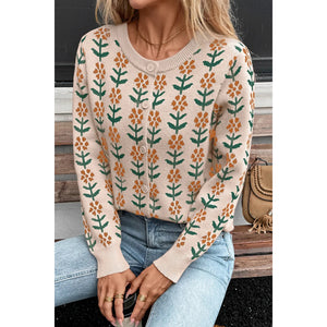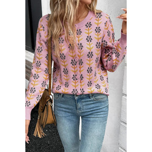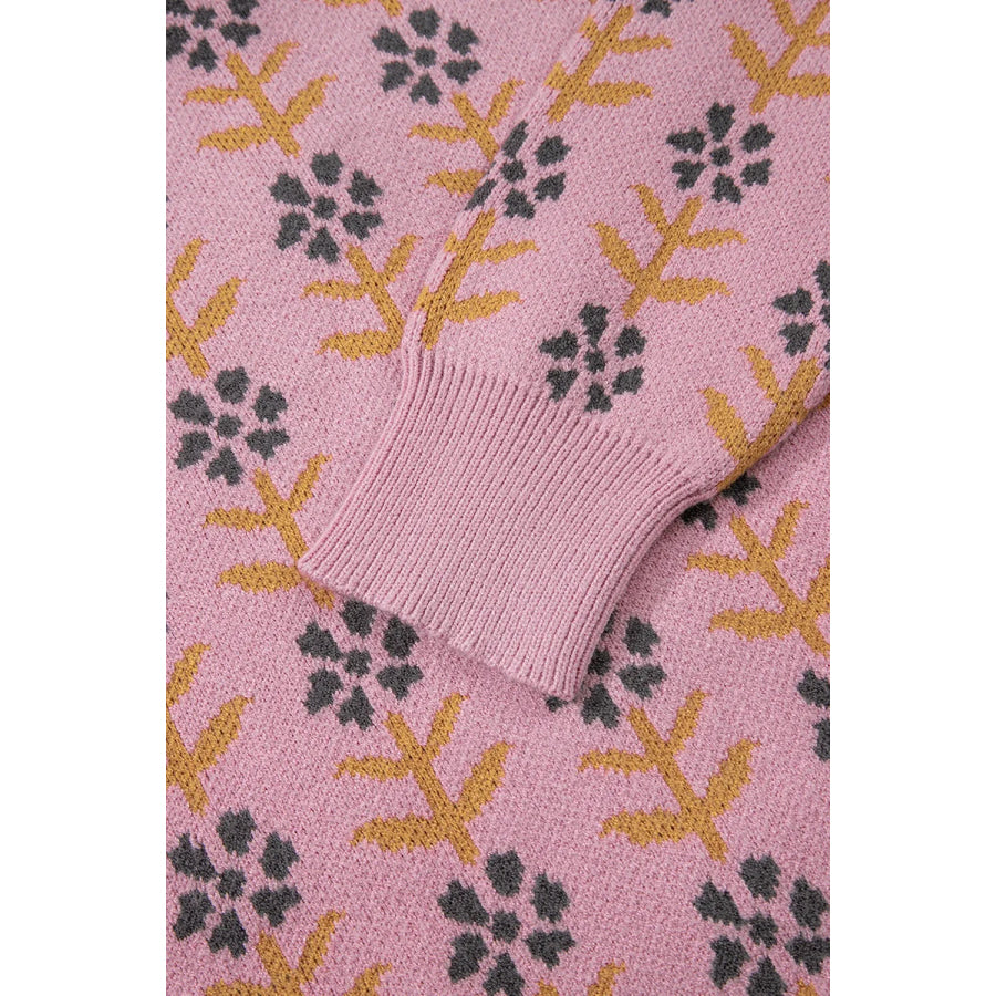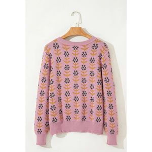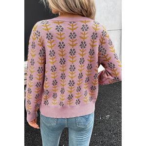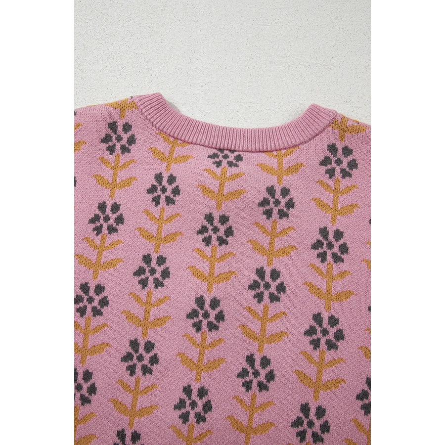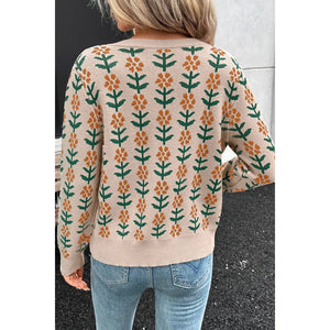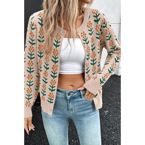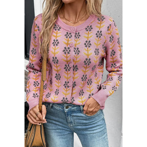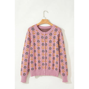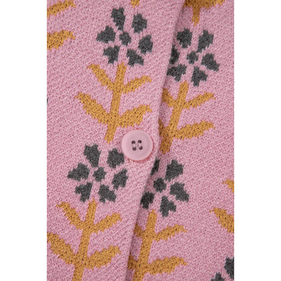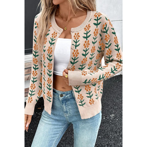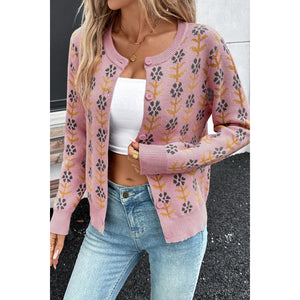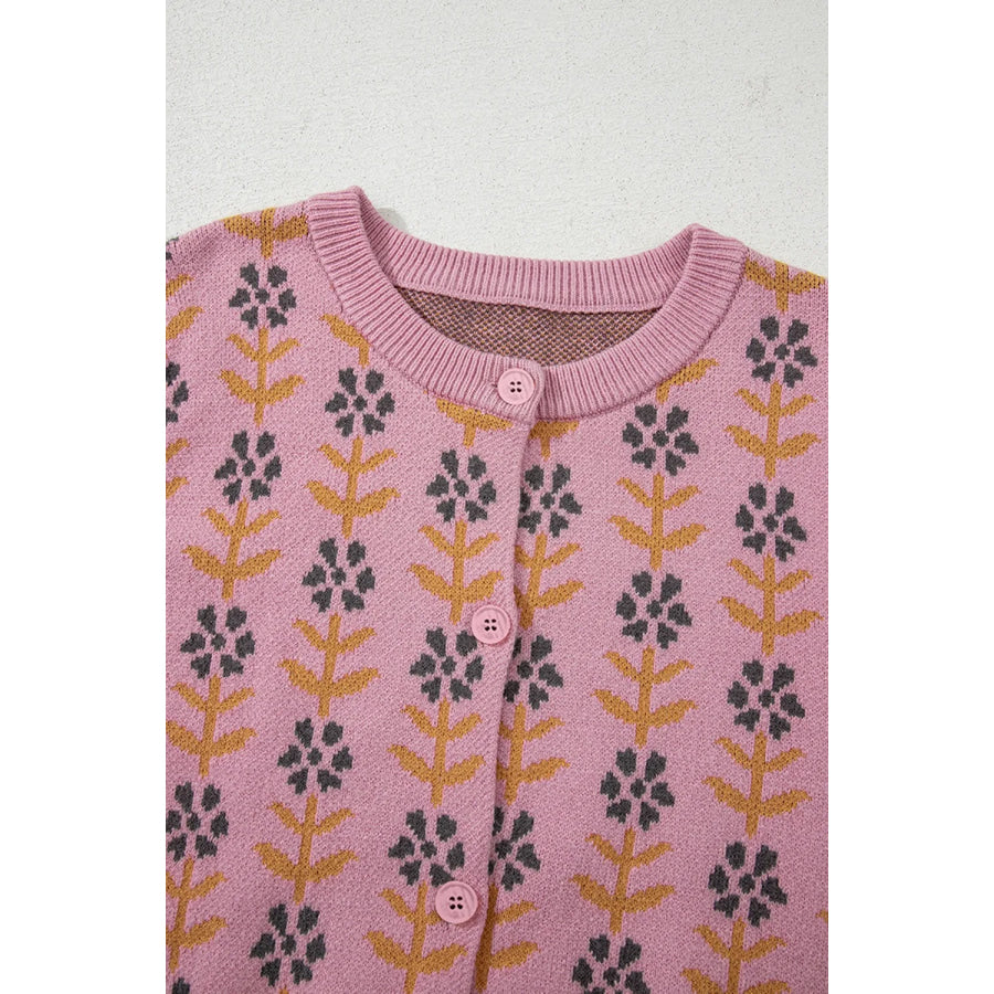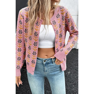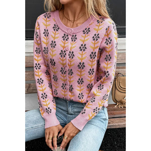 Floral Button-Up Knit Cardigan