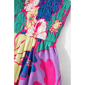 Floral Print Shirred Spaghetti Strap Loose Maxi Dress